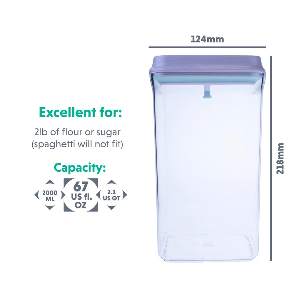> BopTop Available in sets of 2, 3, 5 and 1 brown tinted option for sunlight-sensitive items. >Smart Design >Durable Construction >BPA-Free >Notes Materials: AS/ABS/Silicone Container: Impact Resistant ABS Container Temperature Tolerance: -4°F ~ 176°F (-20°C ~ 80°C) Lid: Impact Resistant ABS Lid Temperature Tolerance: -4°F ~ 158°F (-20°C ~ 70°C) Built-in Screw: Stainless Steel 304 Lid/Container Seal: Silicone 330 Care Instructions: 1. Microwaves and high temperatures can deform the lid seal. This can affect the airtight capacity of the lid. 2. Lid should be disassembled prior to cleaning. Please ensure all components are completely dry before reassembly and use. 3. If storing hot liquids: do not turn upside down, or shake container 4. Do not wash, clean or scrub with abrasive brushes or abrasive cleaning powders. >BopTop< The modular easy-use mechanically sealable container that keeps food fresh. Container Size: 1 container = 1x2000ml = 2000ml (67 fl USoz/8.4 cups/2 USQt) 4.88”x4.88”x8.58” (124x124x218mm) DxWxH >Smart Design< Mess-free curved corners make it easy to pour food out. Perch lid on edge of the tank using the built-in hook when canister is in use. Lid can be easily disassembled for cleaning, as necessary. Top-rack dishwasher safe. >Durable Construction< Long-lasting, shatter-resistant, fridge/freezer safe*, stain and odour-resistant plastic set that you can use for years. >BPA-FREE< BPA-free construction ensures no chemicals leech into food. >Notes< Not intended for microwave use — temperatures exceeding 176°F/80°C can deform the silicone seal and affect the airtight capacity of the lid. Do not tilt upside down with hot liquids inside. Lid should be disassembled prior to cleaning, and fully dry prior to use. Do not wash, clean or scrub with abrasive brushes, or abrasive cleaning powders. For best airtight seal please ensure silicone seal and rim, where is made, is kept clean. *Limited 1-year .