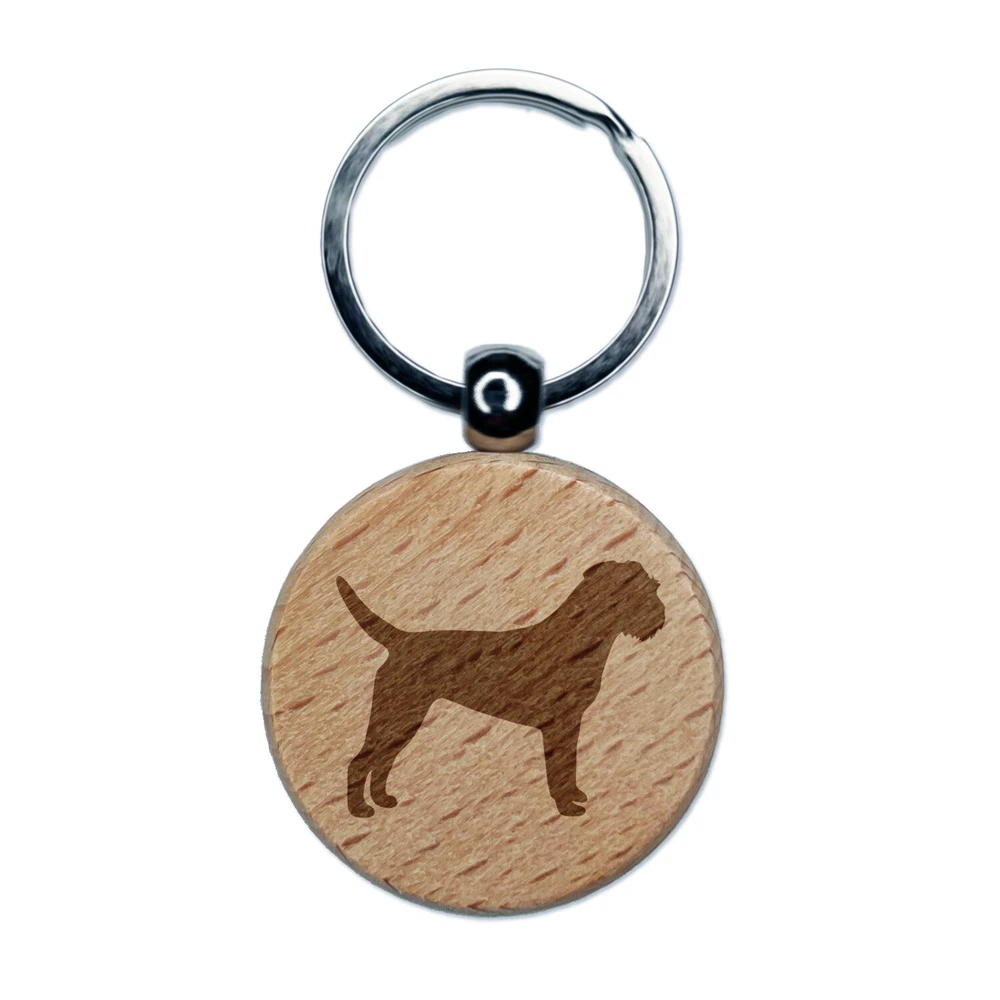 Border Terrier Dog Solid Engraved Wood Round Keychain Tag Charm