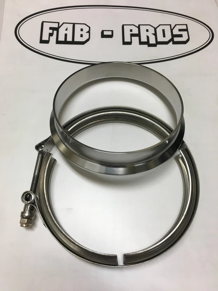 Application: 5" Marmon downpipe flange and clamp for the S400 Series (S SX SX-E) Borg Warner turbo with the Big Divided T6 Turbine Housing! Fab Pros V-band Flange and Clamp set for the Turbine Exit (Downpipe side) on all the DIVIDED T6 flanged (Larger Frame) 400 Series Turbos, S, SX, and SX-E with the beveled face. ** Not for the Smaller "T4" Housing on these turbos that has the flat face*** That Flat 4" Flange for the T4 Housing can be ordered Here -> , https://www.ebay.com/itm/264358646996 This Marmon Style flange is compatible with these BW (Borg Warner) Turbo models including: S400 S400SXE S475 S480 S463 S467 SX-E SX Many others in the S400 Series. *** This one DOES NOT FIT the S200 and S300 housings. Please refer to other listings. This 304 Grade STAINLESS STEEL billet machined flange has a 5" OD to mate to a 5" tube and weld. The FLANGE OD (Outer Diameter) of the flange on the housing needs to be 5.75" Comes with a matching heavy duty USA MADE clamp. OPTIONAL 5" 90 DEGREE STAINLESS ELBOW , https://www.ebay.com/itm/143356506326 OPTIONAL PART TO STEP THIS FLANGE FROM 5" TO 4" USING THIS TRANSITION , https://www.ebay.com/itm/263835567230 ADDITIONAL PART FOR YOUR TURBO - THE 3.5" COMPRESSOR HOUSING V-BAND FLANGE/CLAMP SET , https://www.ebay.com/itm/263328962688 Another high quality part made for FABRICATION PROS. Includes USPS PRIORITY Mail shipping for quick 1-2 day arrival to most US destinations. Order today and it will ship today.