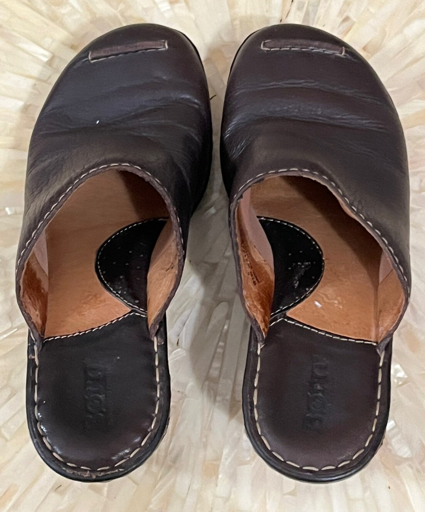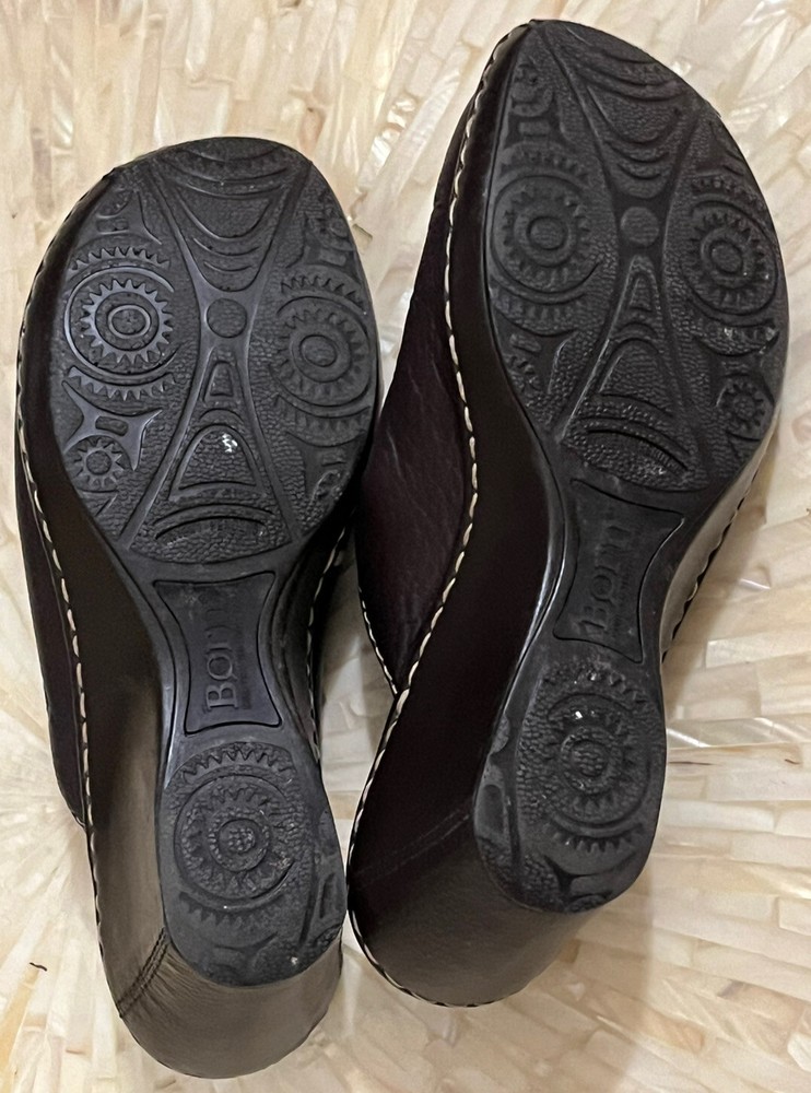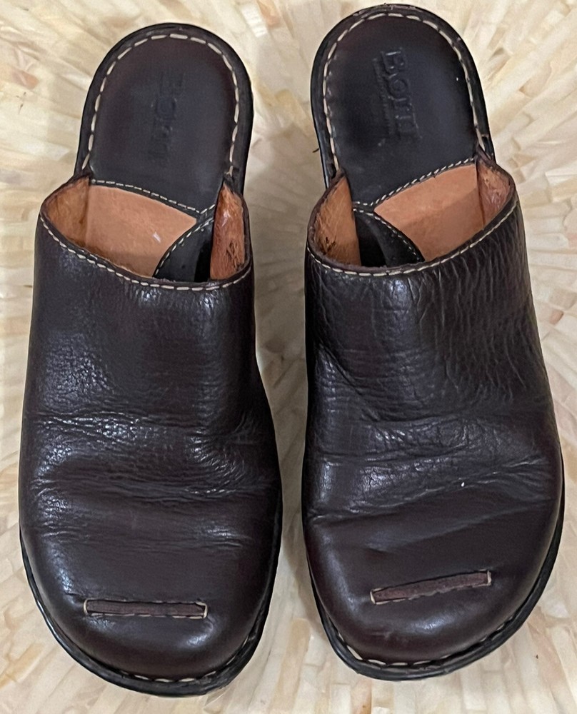 Born Shoes Leather Slip On Mule Clog Closed Toe Wedge Comfort Brown Women 8