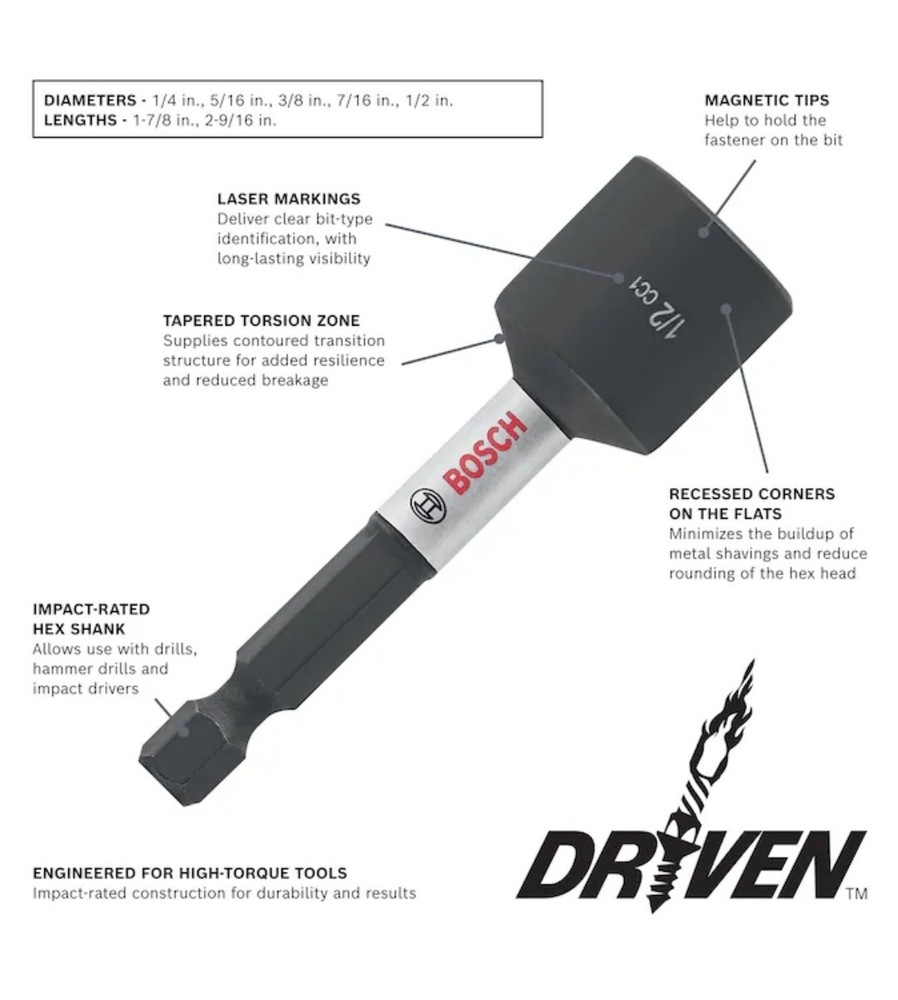 This Bosch nutsetter set is a game-changer! The torsion zone design absorbs shock, reducing wrist strain while driving fasteners. The 5-piece set covers common sizes, and the hardened steel construction holds up to heavy use. The magnetic grip keeps nuts secure—no more dropped hardware. Compact but tough, it’s perfect for auto work or construction. Worth every penny for the quality!