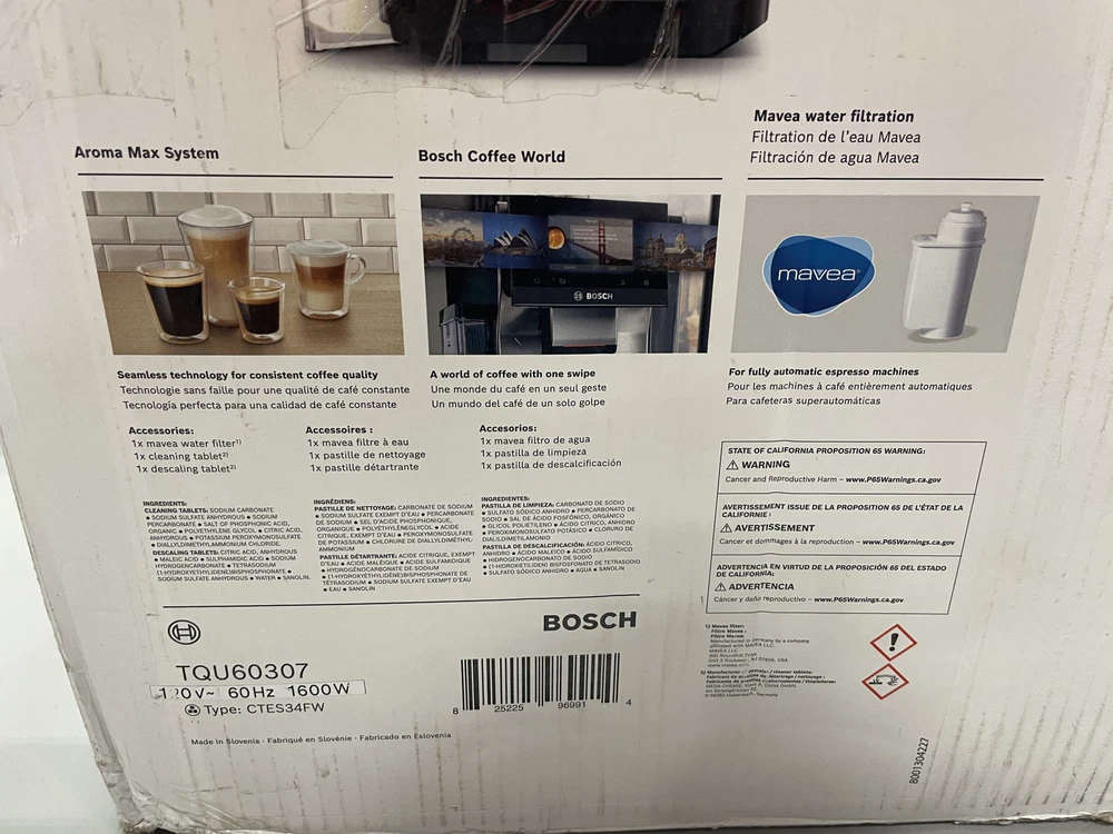 ebay template Bosch 800 Series TQU60307 VeroCafe Fully Automatic Espresso Machine In Silver Item Specifics: Model: TQU60703 Size: 81 oz water tank Color: Stainless Steel UPC: 825225969914 Retail Price: $1999.00 Condition: New/opened -- distressed original packaging; packaging show general wear from previous transit & warehouse storage Features: Build-in grinder Adjustable dispenser Removable water tank 36 beverage option 4 coffee strengths Coffee pot function 30 Favorites Aroma Select 19.0 pressure bar 5" touch screen Integrated milk system with container Beverage customization Cup warmer Auto clean Home connect - brew from your smart phone, tablet or smartwatch Brew with Alexa or Google Home Cargo Largo is not sponsored by or affiliated with the brands associated with the products being sold. All dimensions are approximate This item cannot be shipped out of the United States! Cargo Largo is not sponsored by or affiliated with the brand associated with the product being sold. Contact Seller If you have any questions, please use the “Contact Seller” link in the upper right section of the listing. Our business hours are 8:00 AM - 3:30 PM Monday-Friday (Central Time). Sales completed and emails received after normal business hours may be handled the next business day. Shipping Policy We ONLY ship within the lower 48 United States. We ONLY ship to the address selected by the customer at checkout. Buyers MAY NOT arrange their own shipping. ALL orders with total value of $250 or more WILL require a delivery signature. For this item, we DO NOT offer combined shipping with other listings. Location We offer local pickup for all our eBay auction items. To request local pickup for items you have won, please send us a message asking for “pick up” and we will send you an eBay invoice with your total. All local pickup orders MUST be paid within 4 DAYS after the listing ended per eBay policy. The payment total will include Missouri sales tax AND a $4 handling fee per item. Non-Missouri residents will need to pay IN PERSON (credit/debit cards only) within 4 days after the listing ended. Buy It Now items are NOT eligible for local pickup. Paid items must be picked up within 10 DAYS after the end of the listing. If not, your order will be cancelled and refunded. Social distancing policies WILL be enforced during pickups. Local Pickup Location 7460 Stadium Drive Kansas City, MO 64129 Pickup Hours SUNDAY MONDAY TUESDAY WEDNESDAY THURSDAY FRIDAY SATURDAY CLOSED 11am-6pm 7:30am-4pm CLOSED 7:30am-4pm 7:30am-6pm CLOSED Return Policy We are not an authorized dealer of this product and any warranty included with the product may not be honored by the manufacturer. If you believe that the item purchased from us does not match the item description, or if your item was damaged during transit, please contact us to discuss return and refund options. In order to initiate the refund process, buyer must contact us within 30 Days of receipt of item. All returns will require a return authorization. Please note that we will only pay return shipping if our listing does not accurately reflect the specifications or condition of the item received. If you wish to return an item for any other reason, we will accept a return on MOST items, provided that the item is returned to us in the same condition and within 30 Days. This applies to both the item and retail packaging. Buyer will be responsible for both original and return shipping charges Seller will initiate this transaction and refund the buyer once the item has been received AND agreed to the mutual cancellation. We DO NOT accept any returns on swimsuits, undergarments, stockings, lingerie, or any item marked AS IS for any reason other than a grievous error in the listing. Please bid accordingly on all items listed AS IS. Payments Cargo Largo requires payment within four (4) days. (Please note that this is real-time, beginning when the auction ends.) If payment has still not been received by the fourth (4th) day after the end of the auction, Cargo Largo will relist the item. Most states require the collection of SALES TAX on online sales by remote sellers. We will abide by all local, state and federal tax codes and buyer should check their state and locality for tax liability. Residents of Missouri and all buyers who pick their item(s) up locally are required to pay Missouri sales tax on all items. Sell Smarter with Kyozou. Inventory and Ecommerce Management