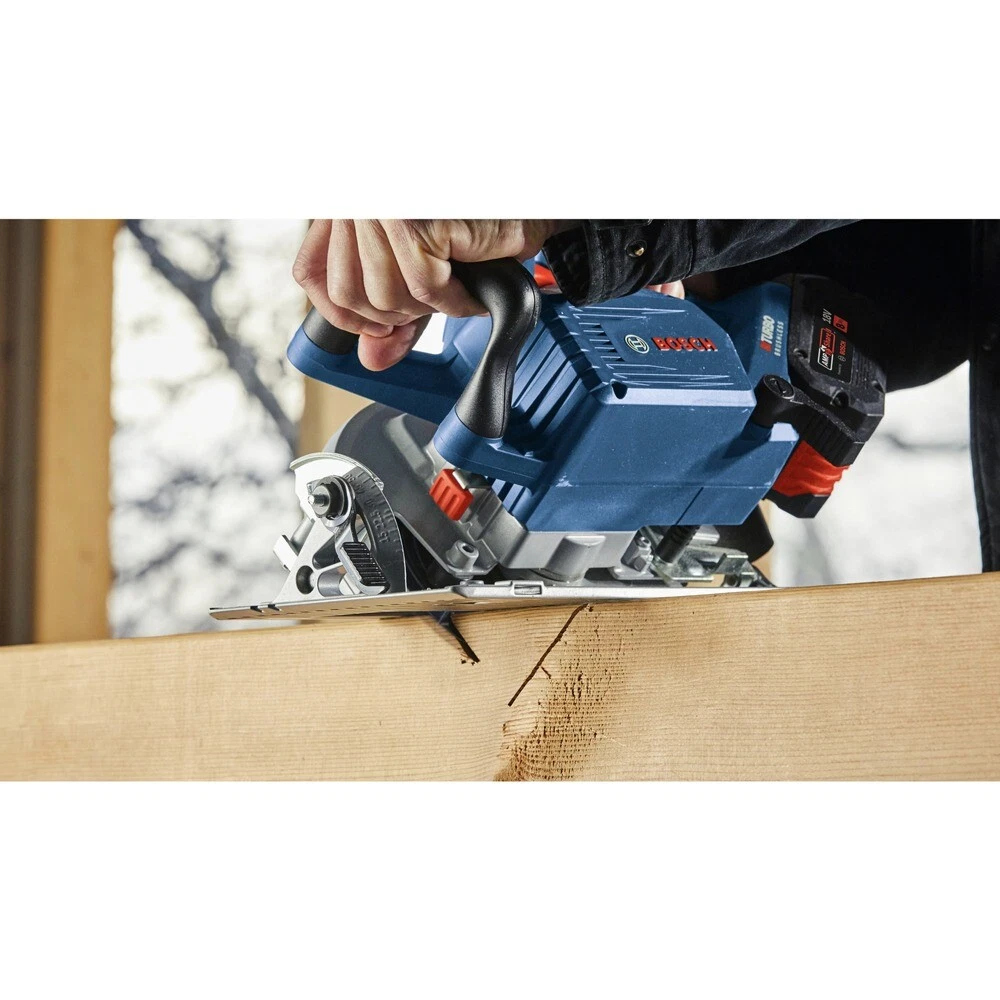 CPO Model GKS18V25CNRT Bosch 18V PROFACTOR Brushless Connected-Ready 7-1/4 in. Cordless Circular Saw (Tool Only) Includes 18V PROFACTOR Circular Saw - GKS18V-25C-R 7-1/4 in. 24-Tooth Carbide Circular Saw Blade Hex Wrench Battery and charger sold separately DETAILS & SPECIFICATIONS Features PROFACTOR performance - Delivers corded performance from an 18V cordless 7-1/4 in. saw 2-1/2 in. cut capacity - Allows for easy cutting through 2X material across the entire bevel range Electronic convenience brake - Quickly stops the blade for less downtime between repeated cuts BITURBO Brushless Technology - Featuring a brushless high-performance motor and drive-train system engineered to take full advantage of the additional power generated by CORE18V High Power batteries (sold separately) Connectivity (module sold separately) - Link to connected device via Bosch Toolbox App to receive detailed feedback 50-degree bevel range - Provides a bevel lock in the front Auxiliary handle - Delivers enhanced ergonomic handling in either hand, even when beveling Pivoting dust port - Rotates 360-degree directing dust or optional vac hose away from body when saw is held in either hand AMPShare System - Designed to be multi-brand compatible across many cordless products to make managing your work day easier AMPShare System compatibility - 18V batteries and chargers are compatible with Bosch 18V power tools and a growing list of cordless products from AMPShare brands Specifications Blade Diameter 7-1/4 in Depth of Cut (45 Degrees) 1-13/16 in Power Source Cordless Number of Tools 1 Housing Material Aluminum Depth Adjustment Yes Bluetooth Compatibility No Depth of Cut (50 Degrees) 1-5/8 in Motor Type Brushless Voltage 18V UL Safety No Height 11.4 in. No-Load Speed (RPM) 0 - 5000 Width 8.3 in. Depth of Cut (90 Degrees) 2-1/2 in CSA Safety Yes Wifi compatibility No Batteries Included 0 Battery Type Li-Ion Weight 9.5 lbs. Cutting Capacity 2-1/2 in Dust Collection Type Dust Bag Bevel Capacity 0-50 Degrees Case Included No Length 15.6 in. Charger Included No ETL Safety No Battery System AMPShare CORE18V WHY OUR CUSTOMERS KEEP SHOPPING WITH US SECURE & HASSLE FREE SHOPPING All items are covered by manufacturer warranty. FAST SHIPPING Most orders ship within 1 business day via UPS Ground shipping! CUSTOMER SERVICE We are available 7 days a week. WARRANTY Comprehensive, two-year warranty included provided by Allstate (US only). INTERNATIONAL ORDERS Orders outside the US are not protected by manufacturer warranty. (All orders are still covered by CPO's 30-day Money Back Guarantee) Shipping and customs charges for non-US orders will be calculated when the item is added to cart All corded products are designed to work with North American 110/120V outlets only. Products used in foreign outlets without proper use of a voltage adapter/converter will not be covered by CPO's return policy or 30-Day Money Back Guarantee