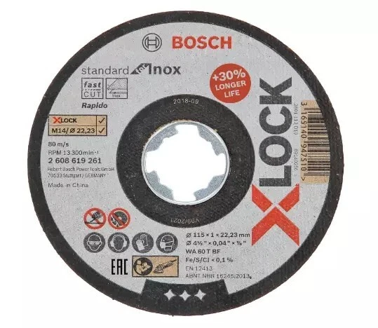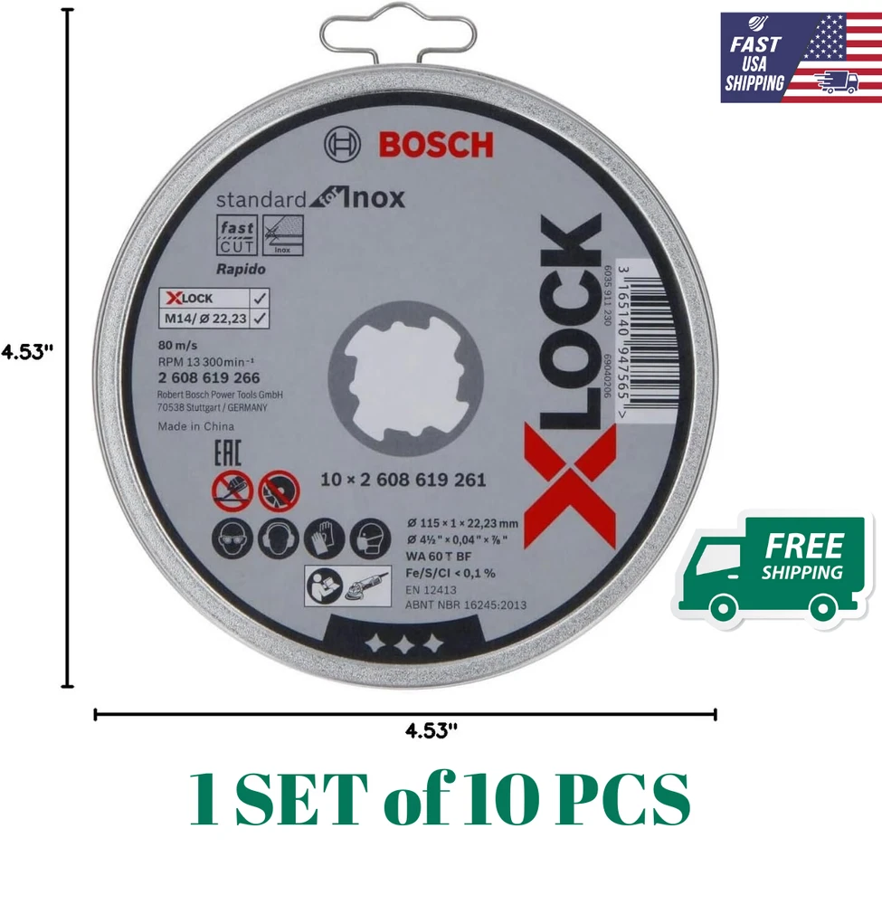 Product Description: The Bosch Professional 2608619266 10-Pack Flat Cutting Discs are engineered for superior performance in metalworking and precision cutting. These INOX-compatible cutting discs are ideal for handling tough metals like stainless steel, delivering clean, fast, and efficient cuts with a 1 mm thickness . Pack Includes : 10 Bosch Professional flat cutting discs, each measuring 4.5 inches in diameter (115 mm) and 0.87-inch arbor (22.23 mm). X-Lock Compatible : These discs are designed for quick and easy mounting on Bosch X-Lock grinders but are also compatible with other standard grinders. High Durability : With a 0.04-inch thickness , these discs ensure long-lasting use, minimizing warping during metalwork. Key Benefits : Perfect for professional cuts across various metals. Reduced friction when cutting stainless steel, which minimizes heat buildup. Free Shipping : Enjoy fast, free shipping across the United States. Enhance your metalworking projects with these high-quality Bosch Professional cutting discs designed for efficiency and precision.