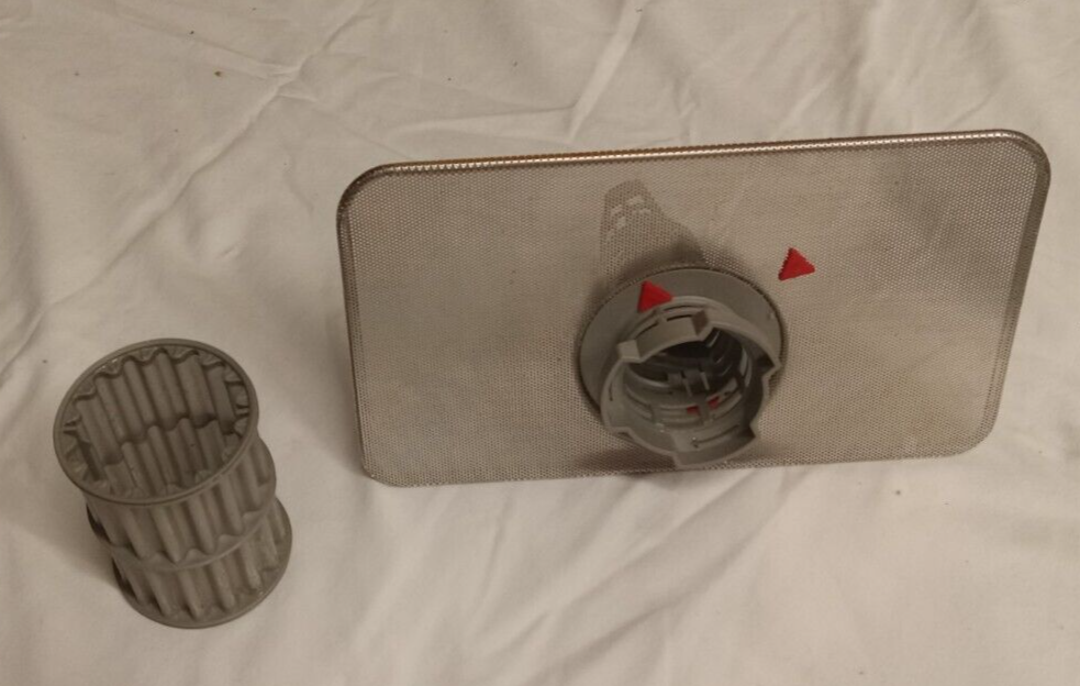 Enhance your dishwasher's performance with the Bosch Filter Assembly, tailored for models including #SHE3AR76UC/24. This essential component, crafted from durable stainless steel, ensures that your appliance operates at peak efficiency. The set comes with three items, each meticulously designed to fit seamlessly into your dishwasher, with a simple slide-in installation process. The assembly's electric power source guarantees easy use and maintenance. Sporting a sleek gray color, the filter unit is the epitome of both elegance and functionality. Manufactured in Germany, this genuine Bosch replacement part is a testament to quality and reliability, ensuring your dishwasher continues to serve your cleaning needs without a hitch.(AI Description) Stainless fine filter, coarse micro-filter and assembly collar. Clean, not used too often. May fit other Bosch models, check compatibility before bidding.