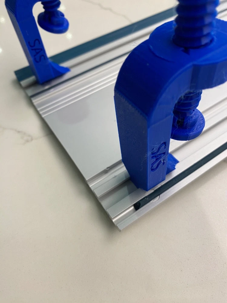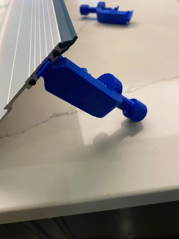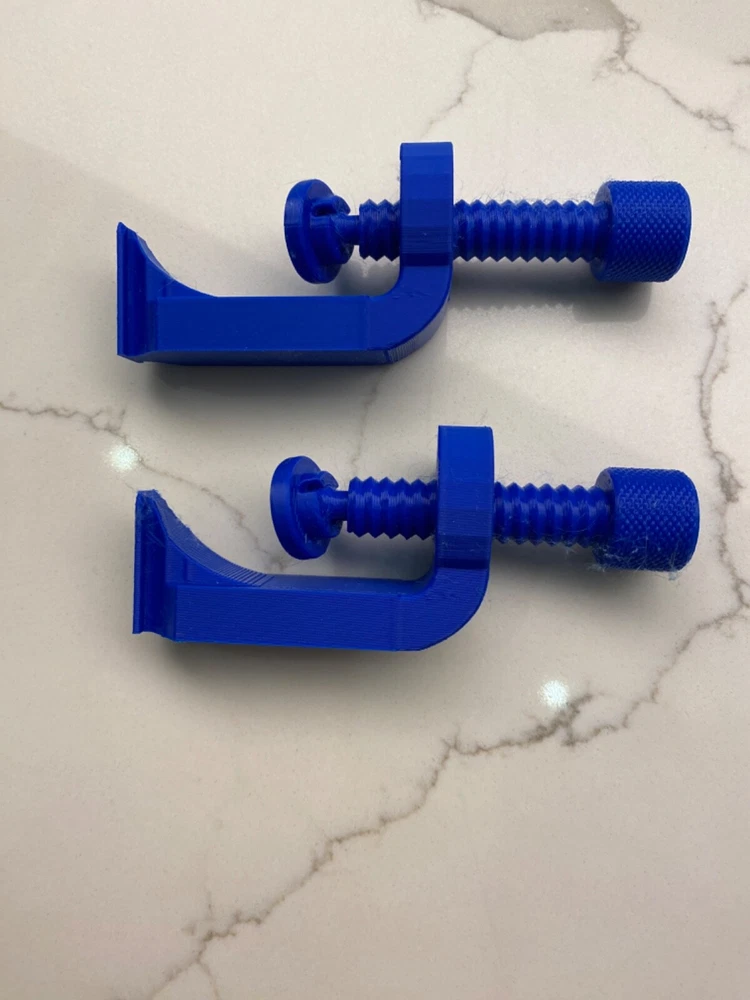 All In One Clamp Improve efficiency with this All In One Clamp to fit the BOSCH FSN Guide Rail, this is all you need! G- Style clamp to fit the Guide Track from Bosch - very easy to hold down material = perfect for worktops Excellent design and fit Cost effective alternative - its all there, right out of the box What is included: 2 (two) complete all in one G-Clamps This is a complete clamp, no additional stuff needed!! Please note: Made in the UK Protected design Guide rails not included Colour may vary (mostly blue) Material PLA/PETG