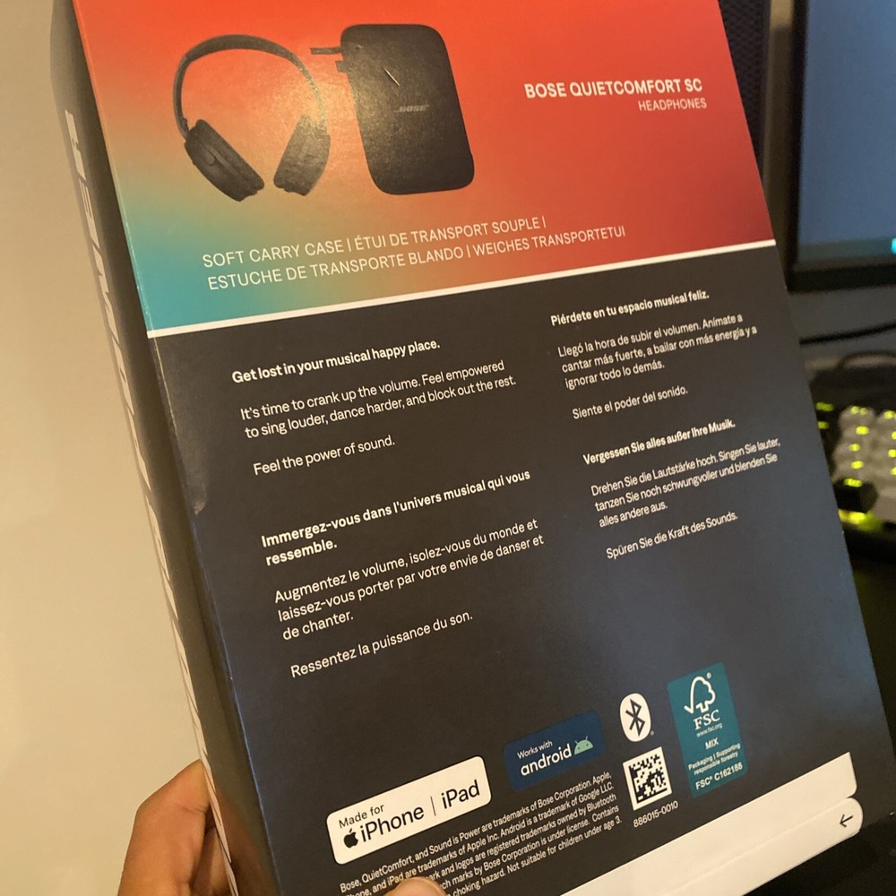 Experience enhanced audio quality with these Brand New unopened Bose Quiet Comfort SC Noise Cancelling Headphones. The over-ear design and Bluetooth connectivity make them perfect for on-the-go use. The sleek black color and noise-cancelling feature provide an immersive audio experience, free from any external distractions. The headphones are designed for use with wireless technology and have a weight of 8.4 oz.