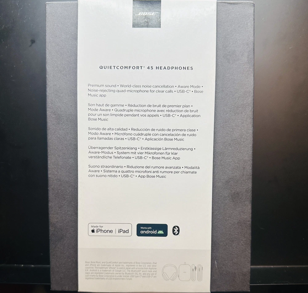 Experience unparalleled sound quality with the Bose QuietComfort 45 Wireless Over-Ear Headset in White Smoke. This headset boasts an ergonomic headband and ear-cup design for maximum comfort during long listening sessions. With Bluetooth connectivity and active noise cancellation, you can enjoy your music without any external distractions. The built-in microphone allows you to take calls and stay connected while you enjoy your favorite tunes. The sleek white design is perfect for any style and the headset is compatible with all your devices. Get ready to immerse yourself in high-quality sound with the Bose QuietComfort 45 Wireless Over-Ear Headset.
