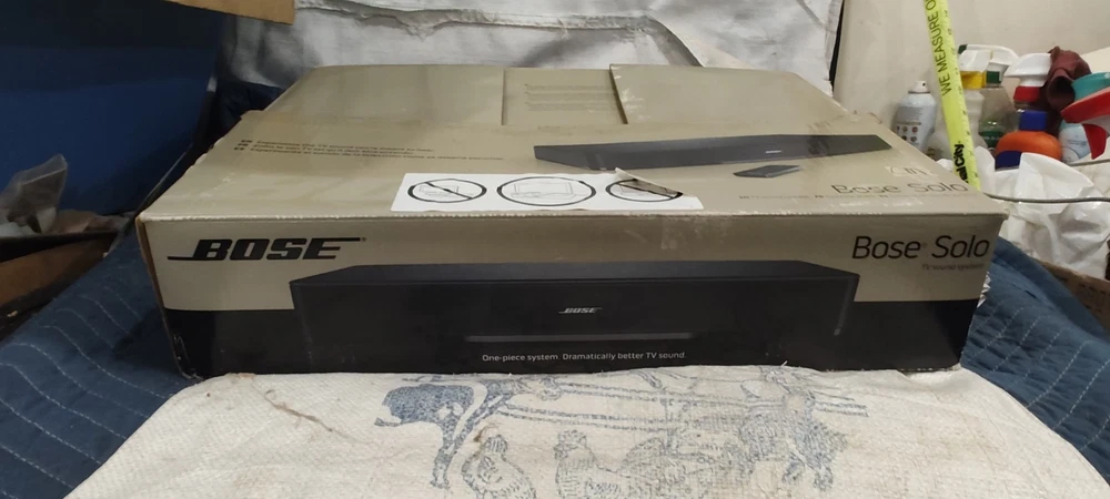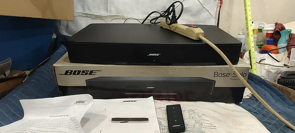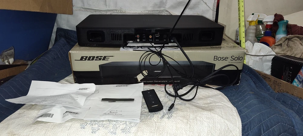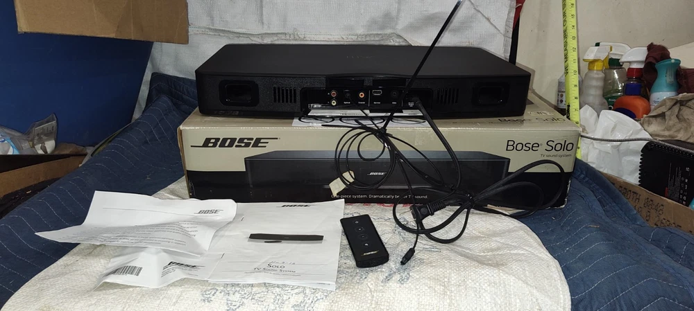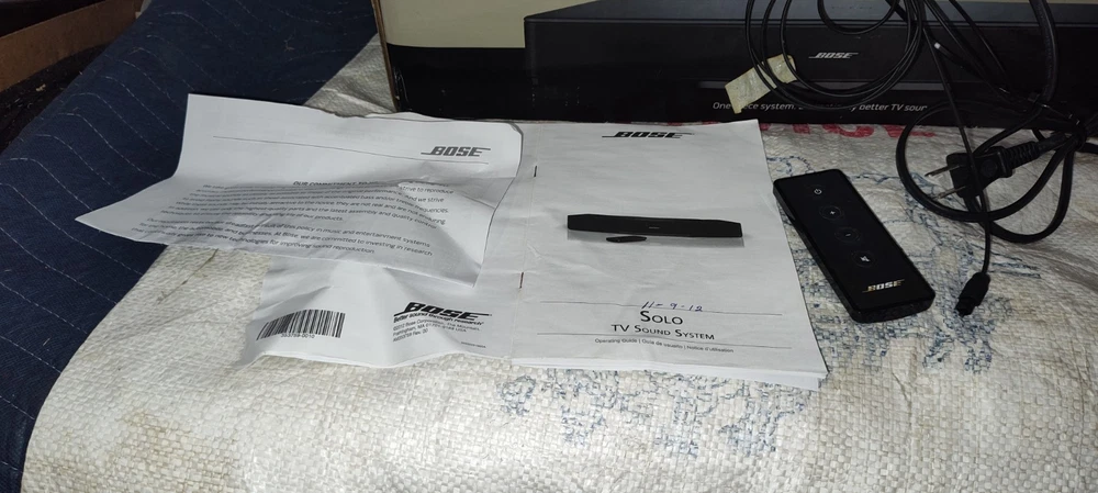 Elevate your home audio experience with the Bose Solo TV Sound System 410376, a sleek and powerful soundbar designed to enhance your television audio. Crafted with high-quality materials and boasting a rectangular shape, this black sound system seamlessly integrates with your entertainment setup. The Bose Solo 410376 delivers stunning sound with a 100W RMS power output and offers a variety of audio inputs including Digital Coaxial RCA, Stereo L/R RCA, Digital Optical TOSLINK, and a convenient 3.5mm input for easy connectivity. Enjoy the convenience of wireless streaming with Bluetooth connectivity or connect your devices using wired options for a reliable signal. The included remote control ensures easy operation of your audio settings. Whether you're enjoying a movie, sports, or music, this home audio system from Bose is tailored to meet the needs of any audio enthusiast looking for an exceptional sound experience. Material number 347205-1300 Bo Solo TV sound system black 120 volt us sounds like you said in the photos please view the photos please view the photos comes with remote control plus some instructions