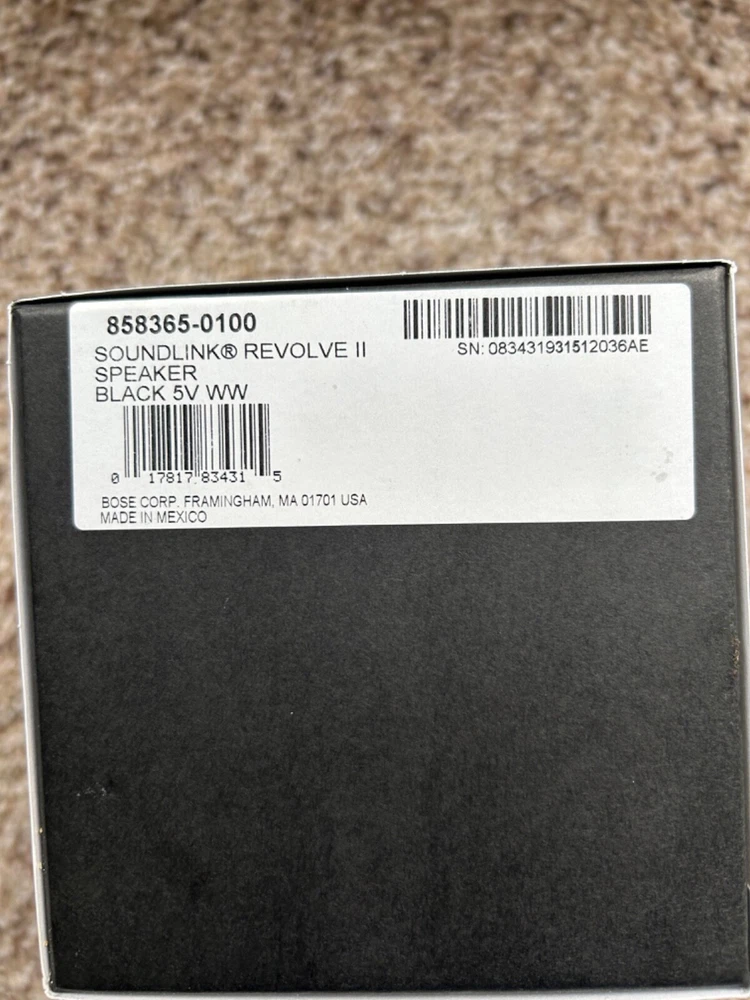 Experience high-quality sound with this Bose SoundLink Revolve Bluetooth speaker. The speaker is wireless and can be easily connected to your device for seamless music streaming. It is designed in a sleek black color and is compact, making it easy to carry around. The Bose SoundLink Revolve speaker is modeled# 419357 and comes with a charging base for added convenience. Powerful speaker tested works great