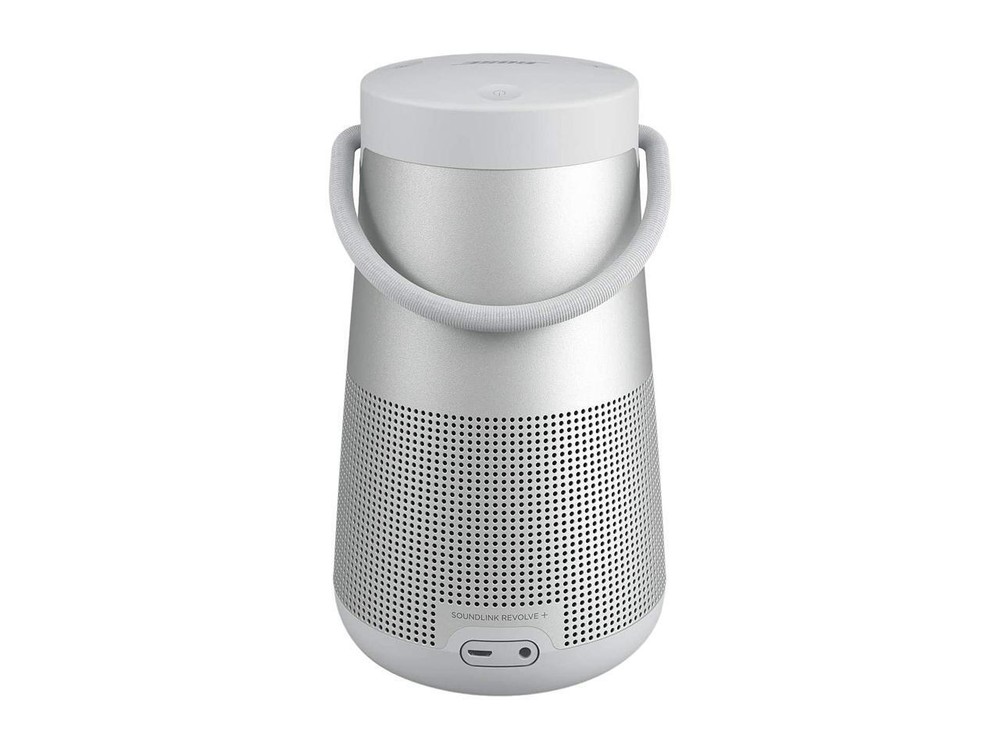 Model: Bose SoundLink Revolve+ gtin13: 0017817776431 Audio Inputs: 3.5mm Jack Style: SPEAKERS Type: Portable Speaker System Material: Metal, Fabric Brand: Bose Shape: Cone Smart Home Compatibility: Alexa, Google Assistant Features: Bluetooth, Touch Control MPN: 858366-1310 Connectivity: Bluetooth, Wired UPC: 0017817776431 Color: Silver