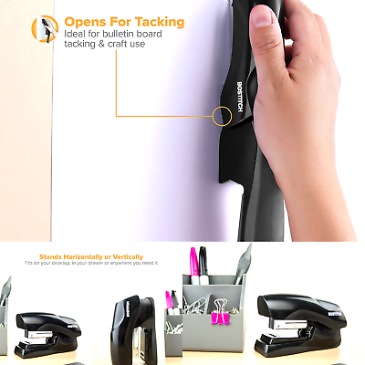 Bostitch Office Heavy Duty 40 Sheet Stapler, Small Stapler Size, Fits into the Palm of Your Hand; Black (B175-BLK) Product Features No-Jam technology eliminates frustrating staple jams Opens 180 degrees for tacking or crafting use Flat clinch design for flatter and neater paper stacks Stands vertically or horizontally for ultimate convenience Non-skid rubber base for stability and desktop protection Easily staples up to 40 sheets 2x more than standard staplers Product Specifications Manufacturer: Amax Inc. Brand: Bostitch Office Item Weight: 8 ounces Product Dimensions: 1.69 x 3.75 x 6.85 inches Item model number: B175-BLK Is Discontinued By Manufacturer: No Color: Black Material Type: Rubber Base, Plastic Number of Fasteners: 1 Number of Items: 1 Size: 1 PACK Manufacturer Part Number: B175BLK Date First Available: January 26, 2018 Why buy from Simpsoproducts? Trusted Seller, Great Feedback Quick Shipping and Tracking HUGE Discounts Excellent Returns Policy The BEST Customer Service Shipping & Returns Not happy? No problem! 30 Day Money Back Return Policy Items Ship within 24-48 Hours Product Description Color:Black Stapling up to 40 sheets of paper has never been this much fun! with erosion by Bostitch Office, you can have a great stapler that's small and efficient. With unique flat Clinch technology, you can staple up to 40 sheets with just a normal standard stapler and this small, unique stapler! Glossy half-strip staples up to 40 sheets of paper: 2x more than standard staplers. No-Jam technology eliminates staple jams. Flat clinch design creates flatter and neater stapled paper stacks. Opens 180-degrees for bulletin board tacking or crafting. Stands vertically or horizontally. Non-skid rubber base provides stability and desktop protection. Uses standard staples. Please check the other items I have for sale