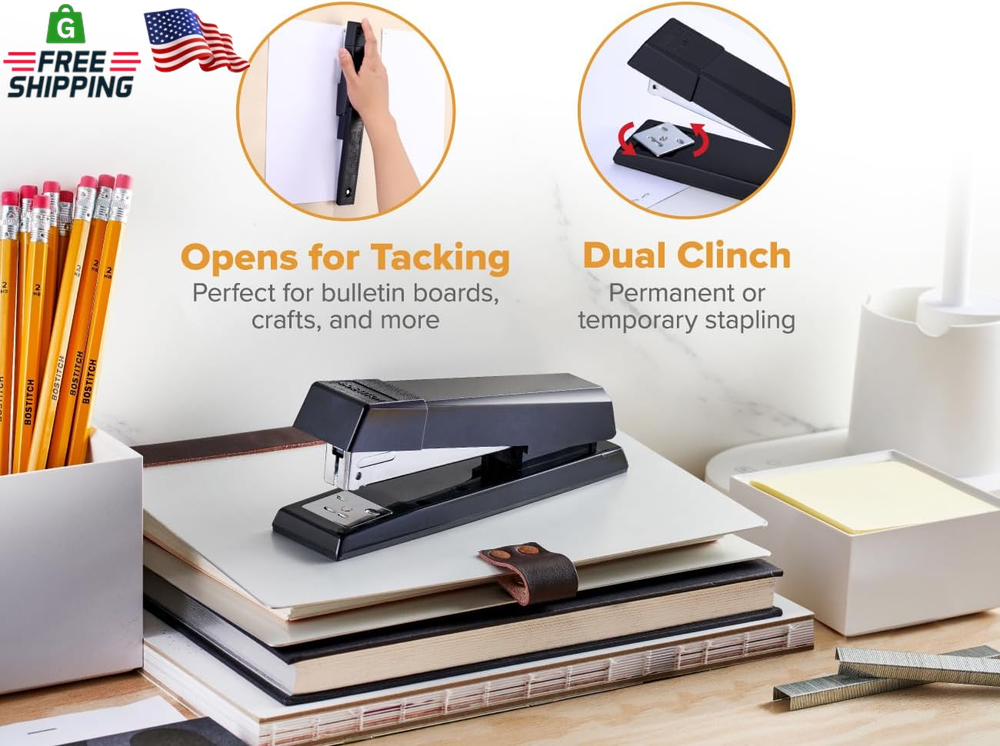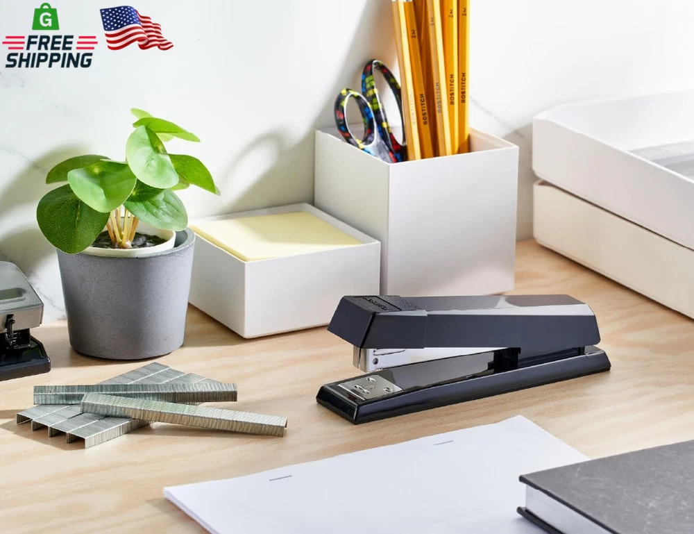 Store New Arrivals Add to Favorite View Feedback Contact Bostitch Office Stapler, No-Jam Premium for Desktop, Includes 1,250 Staples, Full-Strip, 25 Sheet Capacity, Black Description Item model number 3713 Part Number 3713 Style Single Item Package Quantity 1 Color Black Product Dimensions 6.8"L x 1.9"W Material Metal Warranty Description Limited 1-Year Warranty Item Weight 9.6 ounces Capacity Description Full Strip Batteries Required? No Number of Fasteners 1250 Size Single Brand Bostitch Manufacturer AMAX INCORPORATED Staple together papers with the Bostitch Office No-Jam Premium Desktop Stapler. The No-Jam technology ensures stapling is smooth and efficient, while the Dual Clinch system allows for use in temporary or standard stapling. No-Jam technology for smooth stapling Opens for bulletin board tacking Dual Clinch system for temporary or standard stapling Includes 1,250 standard staples Classic looks paired with superior reliability. For stapling ease, the full-strip desktop stapler features technology to eliminate frustrating staple jams during use. Conveniently opens up for bulletin board tacking and crafting. Easily adjustable Dual Clinch System allows for temporary (outward) or standard (inward) stapling. Staples up to 25 sheets of paper. Uses standard staples. ABOUT US We offer the best prices around on high quality products. Our E-store includes media such as books, movies, music and games while offering electronics, toys, sporting apparel, clothing, tools, general home, garden items and more. SHIPPING We are always working hard to ensure your package arrives as soon as possible. Please understand that some factors like weather, high postal traffic, and the performance of shipping companies are outside of our control. We offer free shipping to the lower 48 states and ship within 2 business days of payment, usually sooner. We do not accept P.O. Boxes. Please provide a physical address. For shipping outside of the continental USA, we only use eBay's Global Shipping Program.The item is shipped to KY and then sent to the rest of the world. International customers are responsible for all duties and taxes. Continue to check out in order to calculate costs for shipping the item to your country. Messages regarding eBay's Global Shipping Program MUST be directed at eBay EXCLUSIVELY. RETURNS We offer a 30-Day Return Policy on items which you are not completely satisfied with. You have the option for a full-refund or an exchange of the item. No returns are available on items shipped outside of the USA. PAYMENT We accept PayPal. CONTACT US This page content is yet to come Please ad us to your favorite seller and visit again later Thank You CUSTOMER SATISFACTION We try our very best to make sure every customer is completely satisfied. If there's a problem, message us! We're happy to help. WE ACCEPT Copyright © 2021 AutoDS. | All Rights Reserved