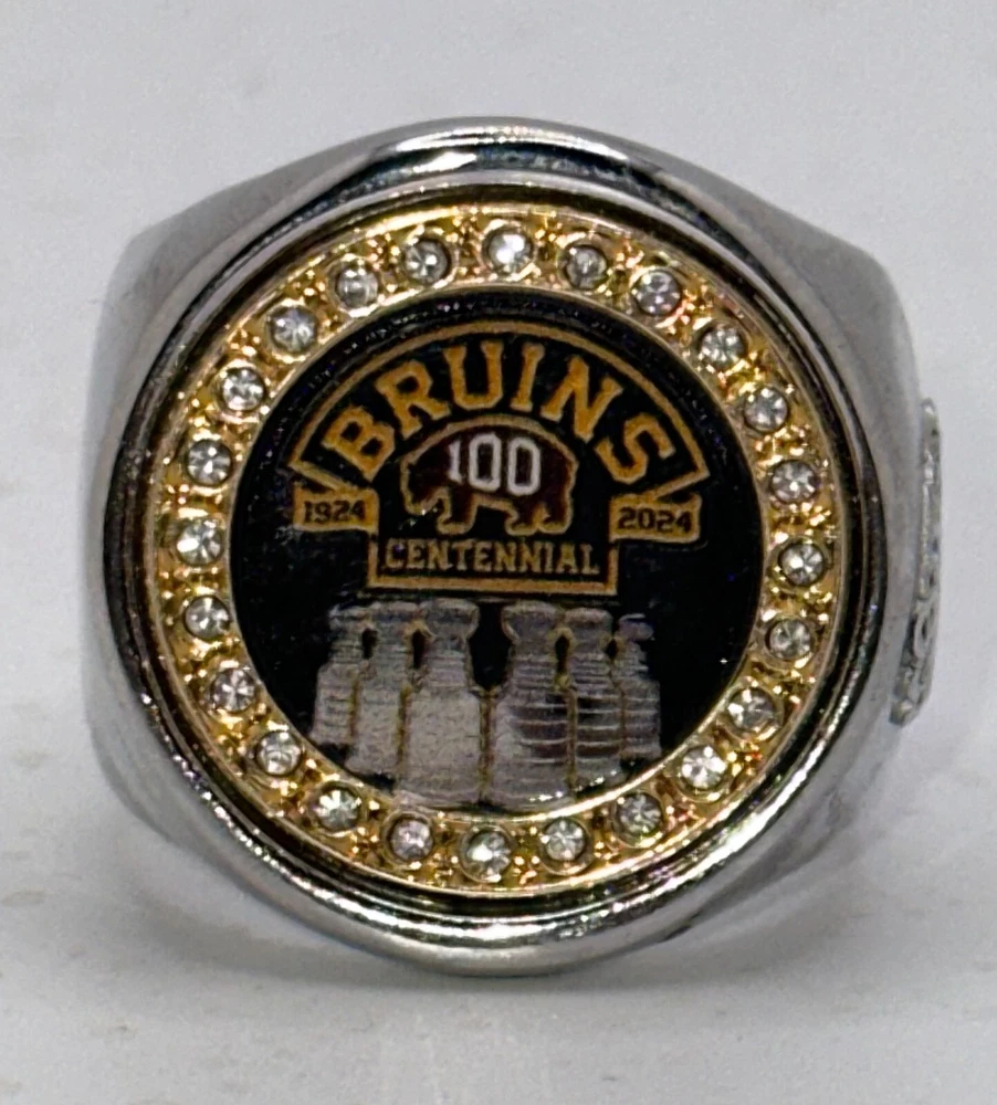 Celebrate a century of hockey glory with the Boston Bruins Centennial deCAPitator Ring bottle cap and can tab opener, a unique collectible for any die-hard fan. Crafted by Brassa Inc., this multi-colored replica championship ring is a nod to the iconic achievements of the franchise and the spirit of the National Hockey League's regular season. This unisex adult piece, sized at 6-15 with a ring sizer for a perfect fit, is not just a piece of memorabilia but a tribute to the 100 centennial year. Proudly manufactured in the United States, it holds a special place in any collection, capturing the essence of the game and the legacy of one of hockey's greatest teams. The only branded ring in the world that opens both bottles and cans.