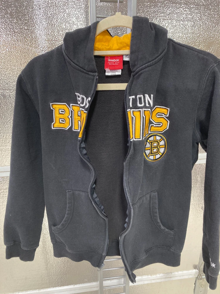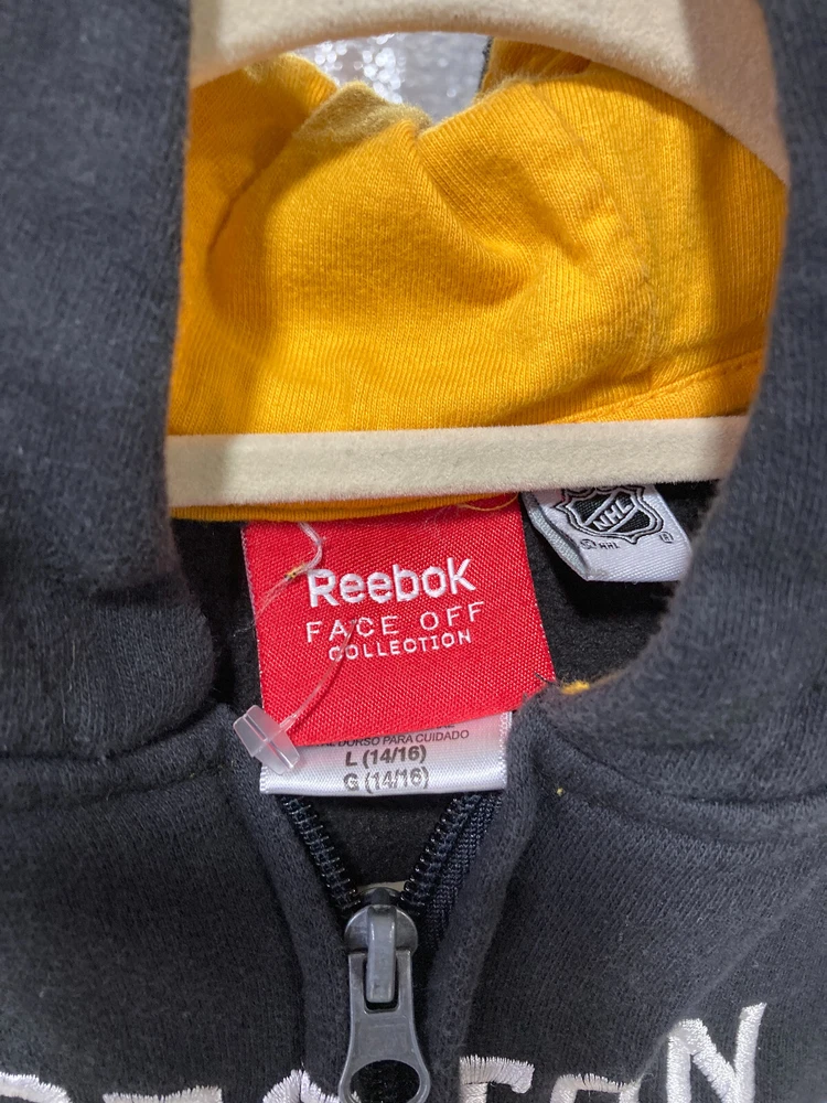 Boston Bruins Full Zip Hoodie Black Youth Large (14/16) Reebok Face-Off Collection Please Note - This sweatshirt is used and has been worn and washed. It may not fit as it did when new. Please message me for any more photos or measurements before buying. Being sold as is with no returns. Thanks so much for checking out my listing! If you need more information, or pictures, please contact me before buying. Its that time of year where all the shipping companies are extra busy and packages may have delays. Even if the tracking number shows it has been delivered it may take up to as long as 48 hours before you will actually see it. Please be patient and check with your local shipping carriers for more information. If you need information about shipping, feel free to contact me and I will try and help. PLEASE READ THE FOLLOWING IMPORTANT INFORMATION BEFORE BUYING: SHIPPING: "Economy Shipping" means the lowest common denominator for shipping. Usually I have no issues with it, sometimes I've seen it take 7 days to get to the other side of the country. If you want it FASTER and GUARANTEED, you can message me for more options. I combine shipping as well, just message for more info before buying. Generally I do not ship outside of the contiguous 48, but sometimes I make exceptions. I do not ship international unless it is included in eBay's Global Shipping Program. I ship Monday through Friday. If you purchase an item on Friday, it will ship MONDAY, sometimes on Saturday, but not a guarantee. If Monday is a holiday, it'll go out Tuesday. NO exceptions. I gotta sleep sometime. PAYMENT: I accept PayPal only. Please pay right away with the Buy It Now option. REFUNDS and RETURNS: I do NOT accept returns! Everything is sold AS IS! I do my best to show exactly what your getting the photos, but with a 12 photo limit I may miss something or not be able to show a flaw. If you need more photos please message me before buying. Just to clarify - If your unsure about what your buying please message for more information or pictures before checking out. I do NOT offer returns and NO refunds are given! ABOUT ME: I sell parts on eBay to feed my family and I am not out to scam anyone. I try to sell good quality used items, however once in a while I get something that has damage. This is not intentional, but sometimes it happens. Understand this is USED and will probably show signs of wear and may have some flaws, dust, scuffs, scratches, stains etc. If there is an issue with what you bought, contact me and I will try make it right, within reason. If your buying clothing it will come in a brand new box (most of the time), if your buying boots or something similar it may come in a used but clean box. I make sure your item is packed well and safe. I do this out of my basement... I am human. Please contact me if there is an issue with what I sold you, I'll try to make it right. Please look closely at the pictures and ask questions. I'm happy to help. Thanks again for looking and have a great day!