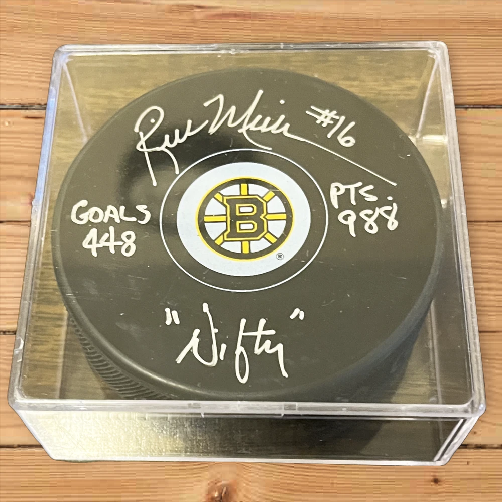 YOU ARE PURCHASING 1 Rick Middleton autographed photo puck. This puck was signed by Rick Middleton at my show in Massachusetts. Puck is inscribed points, goals, Nifty and assists...Shipping and handling $8.95 in the United States. C of A ships with item.