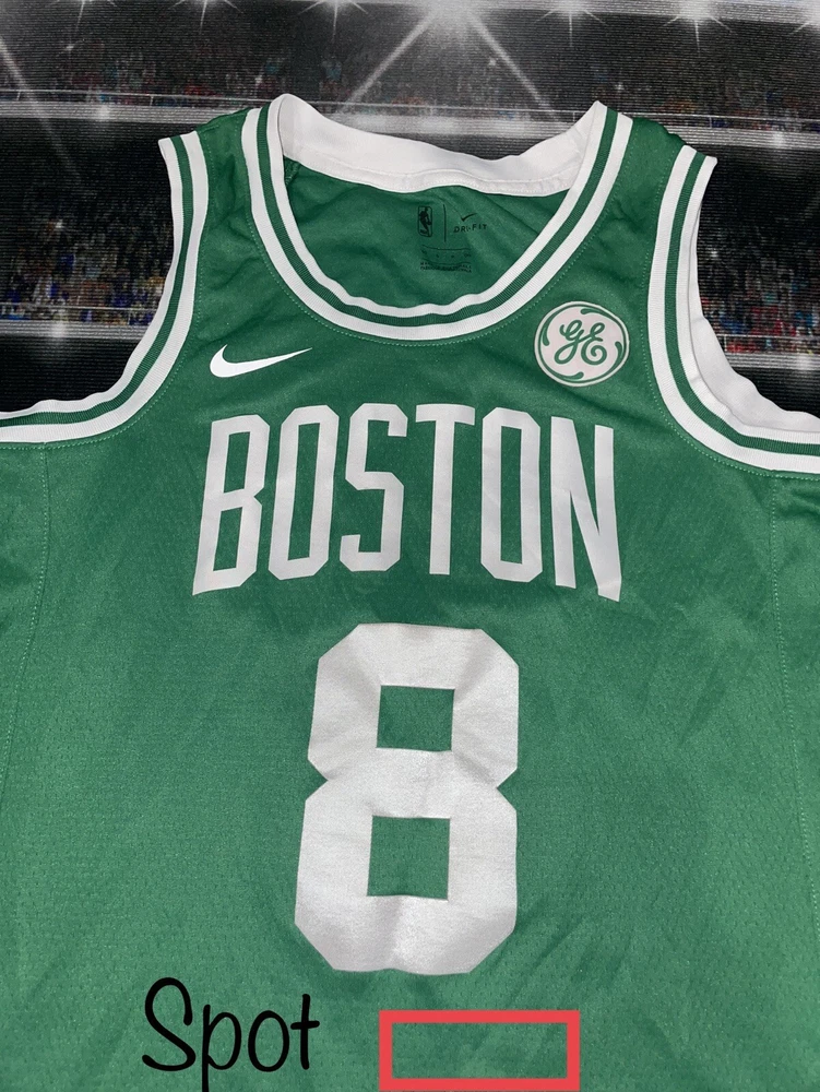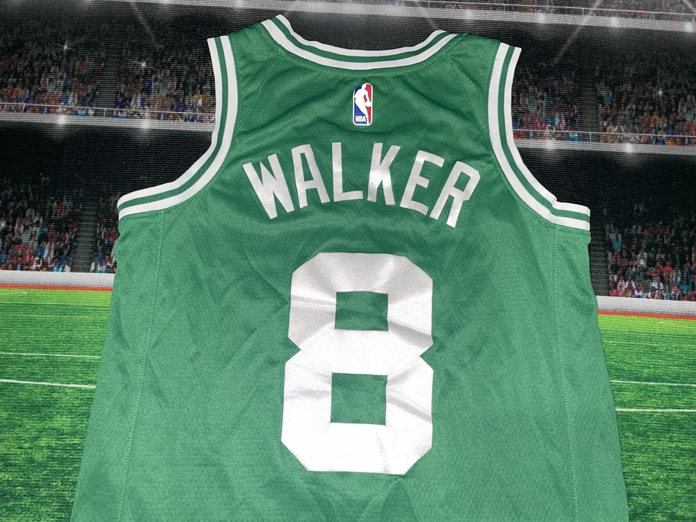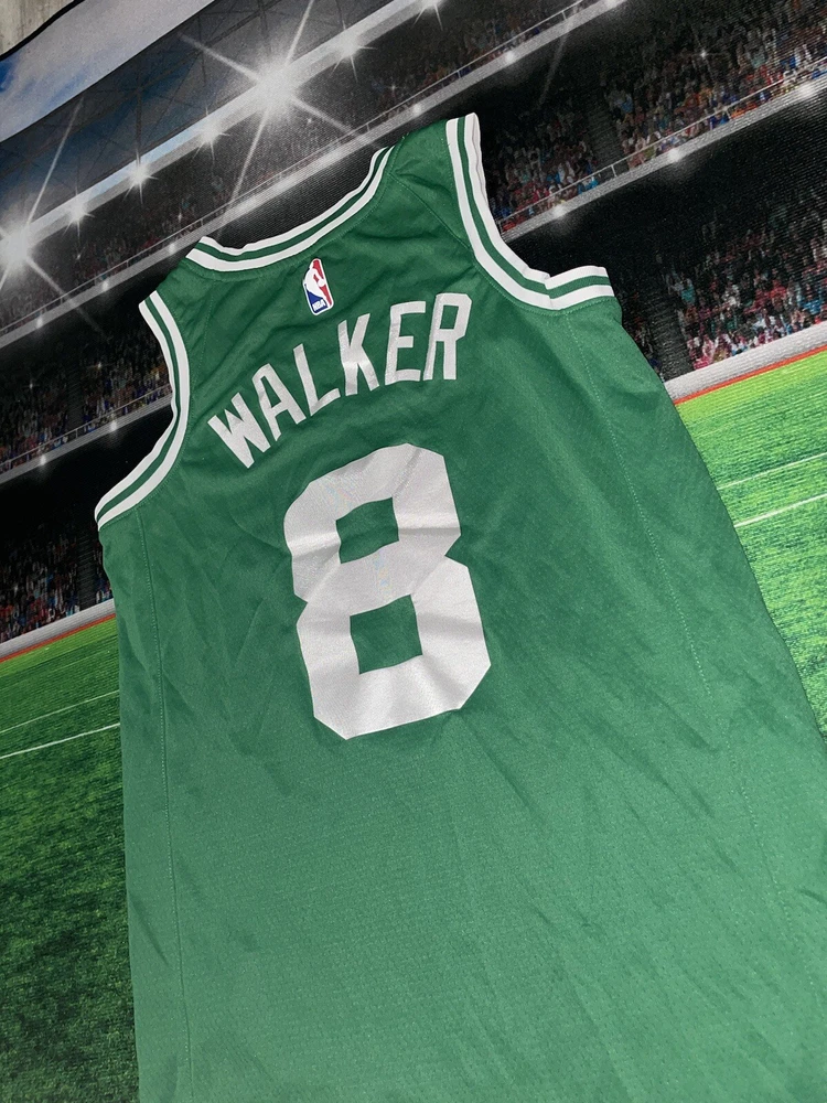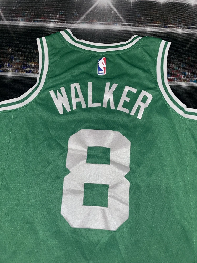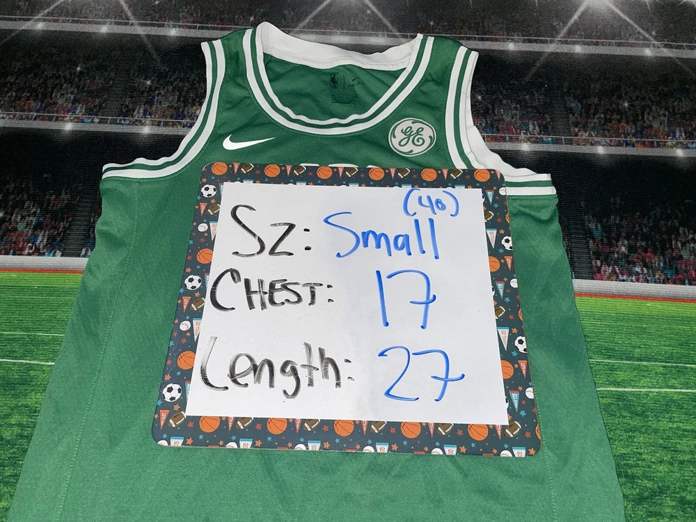 Show your support for the Boston Celtics and Kemba Walker with this officially licensed Nike jersey. The green color and size S make it a perfect addition to any fan's collection. This jersey is perfect for basketball enthusiasts who want to represent their favorite team and player. Made with high-quality materials, this preowned jersey is a must-have for any sports fan. It features the Boston Celtics team logo and Kemba Walker's name and number on the back. This jersey is perfect for game day or any day, and is sure to make you stand out as a fan. Note: has a spot