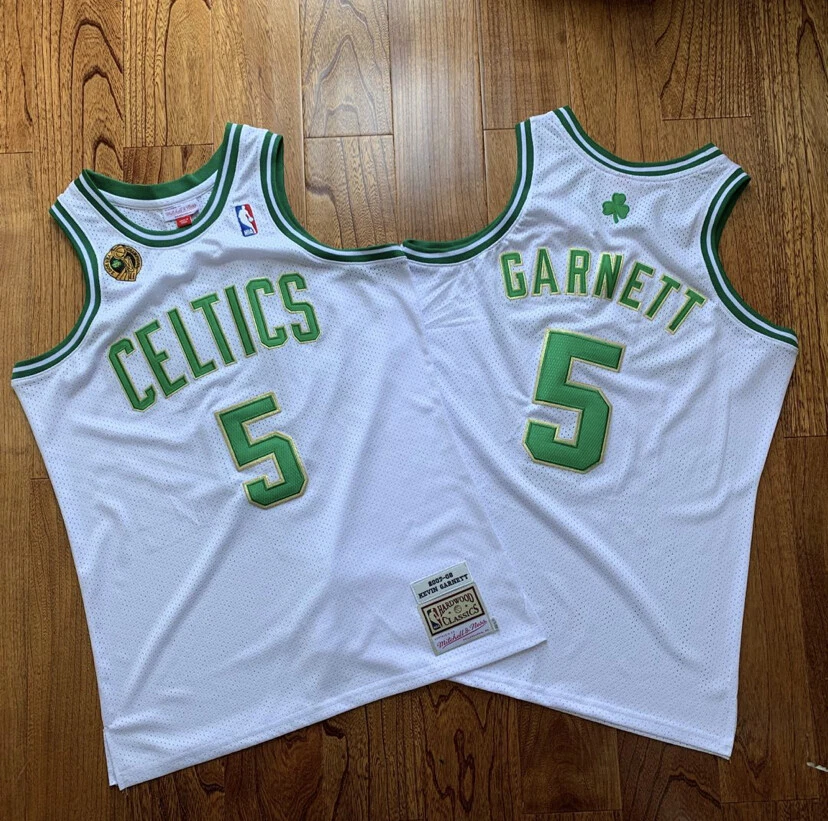 Boston Celtics Kevin Garnet white NBA Finals basketball retro jersey