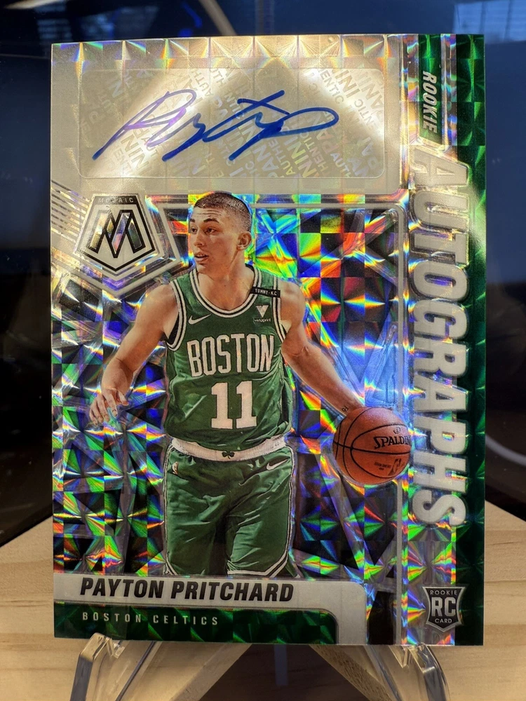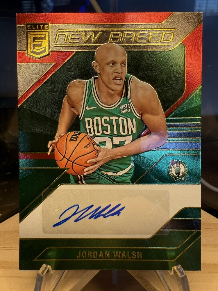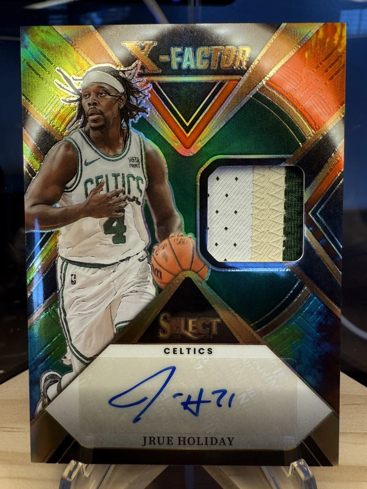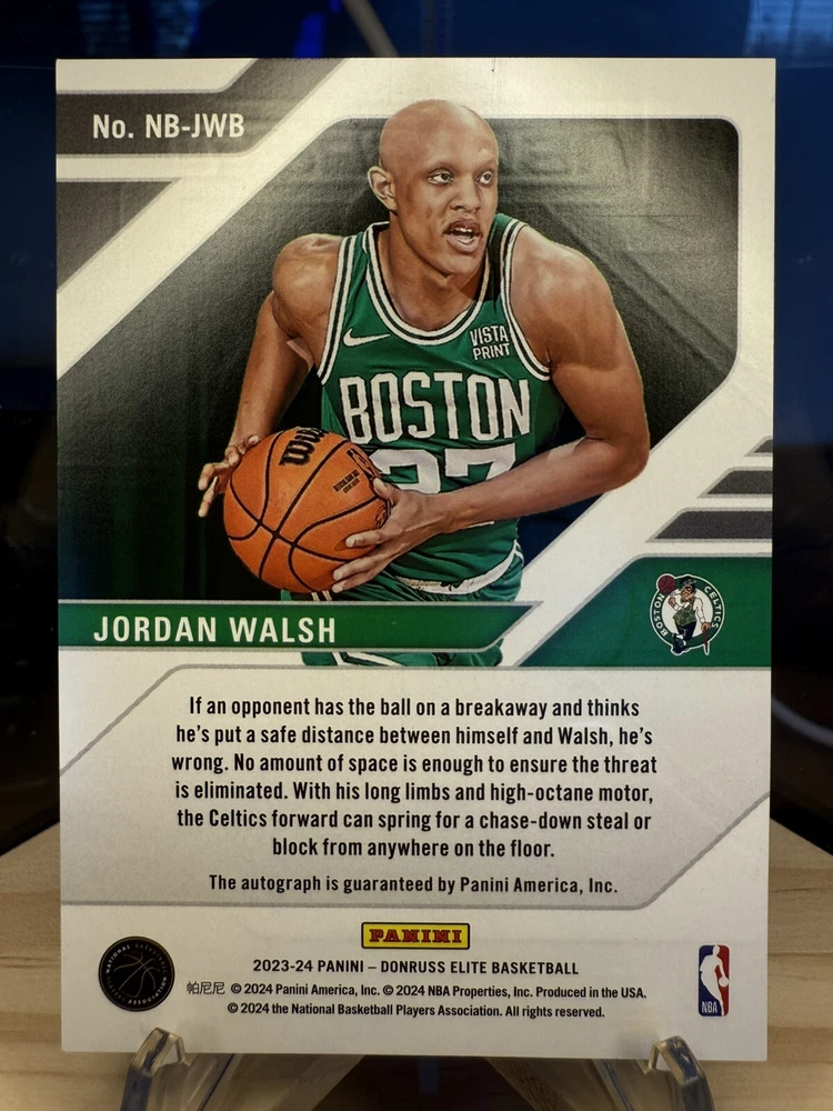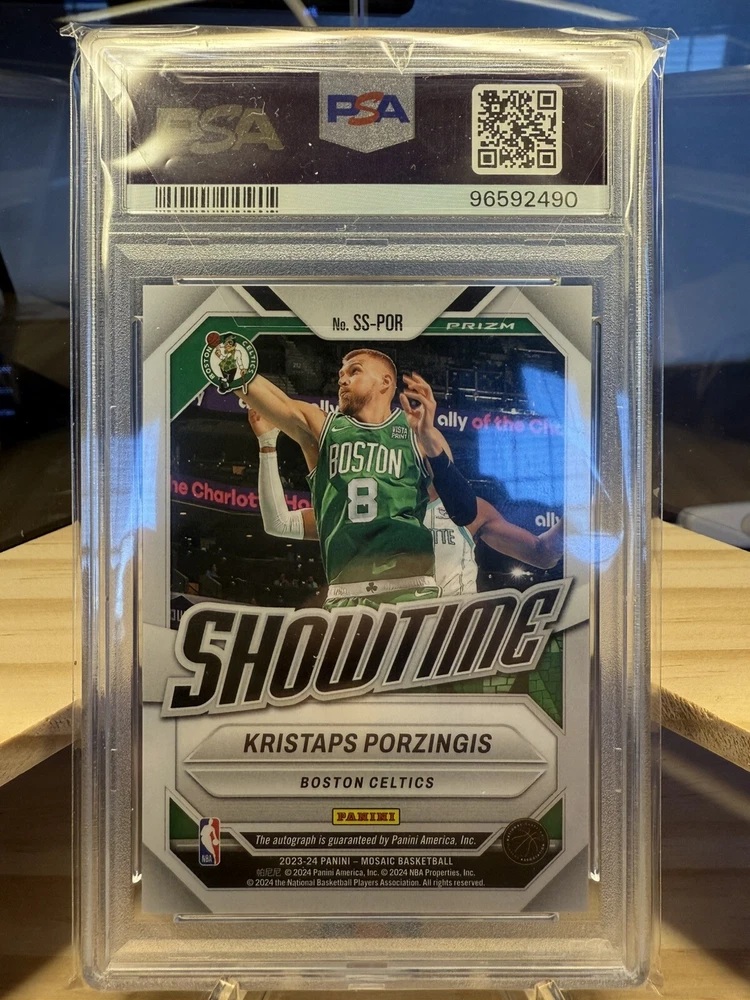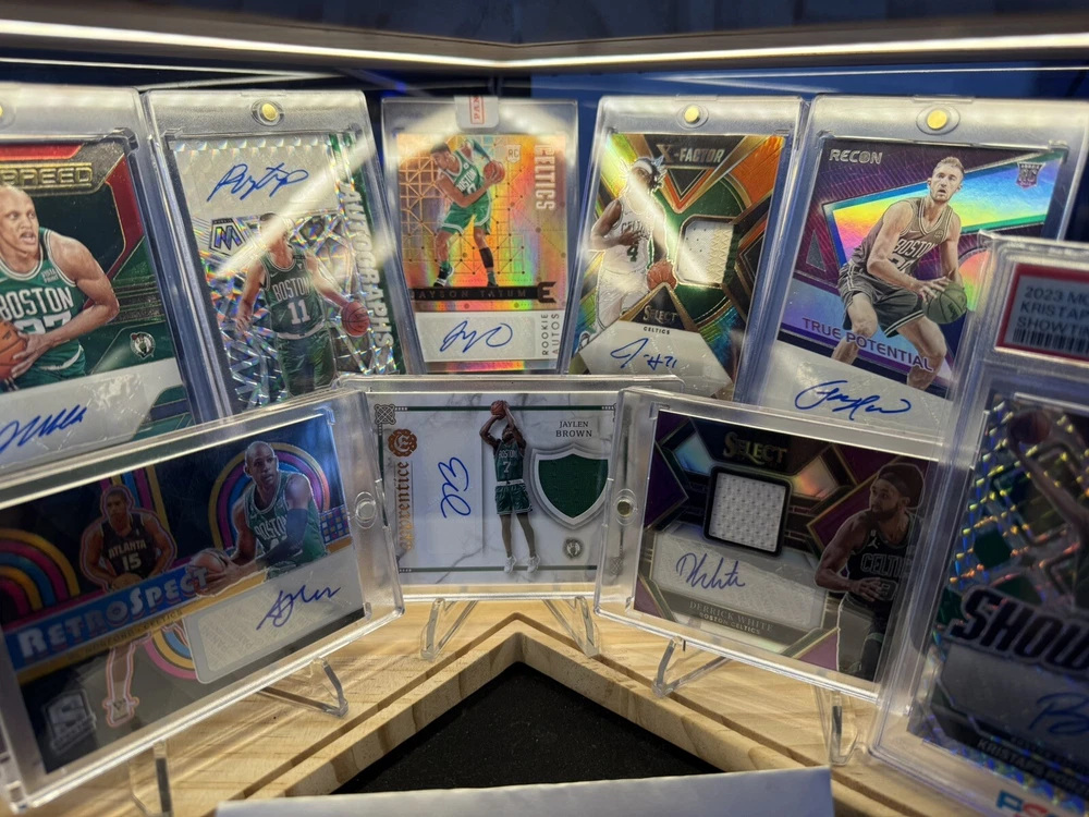 Kick off your collection with an almost complete set of autograph cards from the championship Boston Celtics team! Including various rookie cards, patch autos, rpa, sealed and/or graded! Great assortment of cards in amazing condition. You will be receiving 9 cards in total. Please see details below for each card. Jayson Tatum 2017 -18 Panini Essentials Card No. 223 Rookie Autos Still factory sealed by Panini Jaylen Brown 2016 -17 Panini Excalibur Card No. 2 Apprentice Rookie Patch Auto (RPA) - player worn patch Jrue Holiday 2023 -24 Panini Select Numbered: 23 /25 Card No. XFS-HOL X-Factor - Color Blast Prizm Auto/ Tri Color Patch - game-worn/used material Derrick White 2022 -23 Panini Select Numbered: 56 /99 Card No. AM-DKW Purple Prizm Patch Auto - game-worn/used material Kristaps Porzingis 2023 -24 Panini Mosaic PSA 10 GEM MT PSA# 96592490 Card No. SS-POR Showtime Signature Al Horford 2023 -24 Panini Spectra Numbered: 07 /99 Card No. RSA-ALH Retrospect Prizm Autograph Payton Pritchard 2020 -21 Panini Mosaic Card No. RA-PPR Prizm Rookie Autographs Sam Hauser 2021 -22 Panini Recon Card No. TPS-SAM True Potential Rookie Auto Jordan Walsh 2023 -24 Panini Donruss Elite Card No. NB-JWB New Breed Rookie Auto Will be safely shipped in an USPS Priority Mail Small Box. Thanks for looking, Cheers!