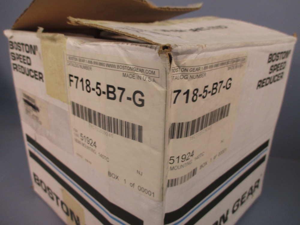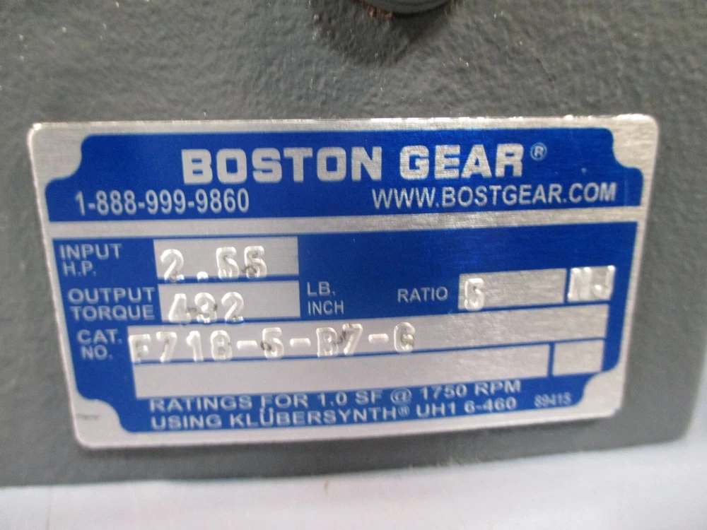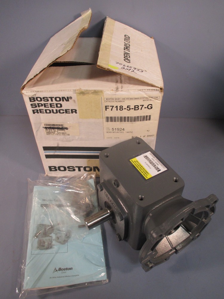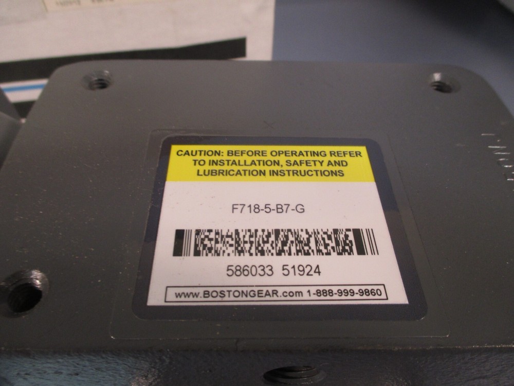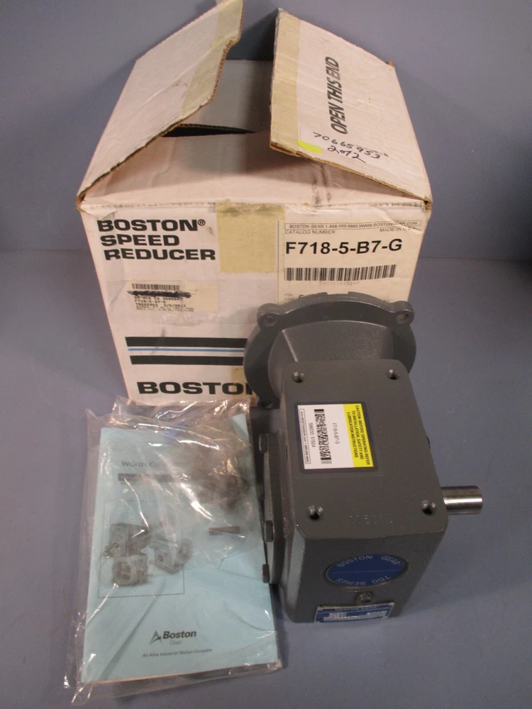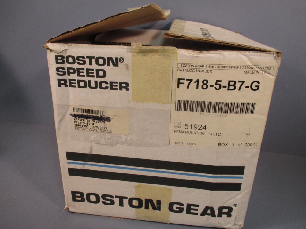 Modified Item: No Country of Origin: United States MPN: F718-5-B7-G Brand: Boston Gear Expiration Date: F718-5-B7-G Type: Right Angle Speed Reducer Custom Bundle: No Shaft Orientation: Right Angle Nominal Ratio: 5:1