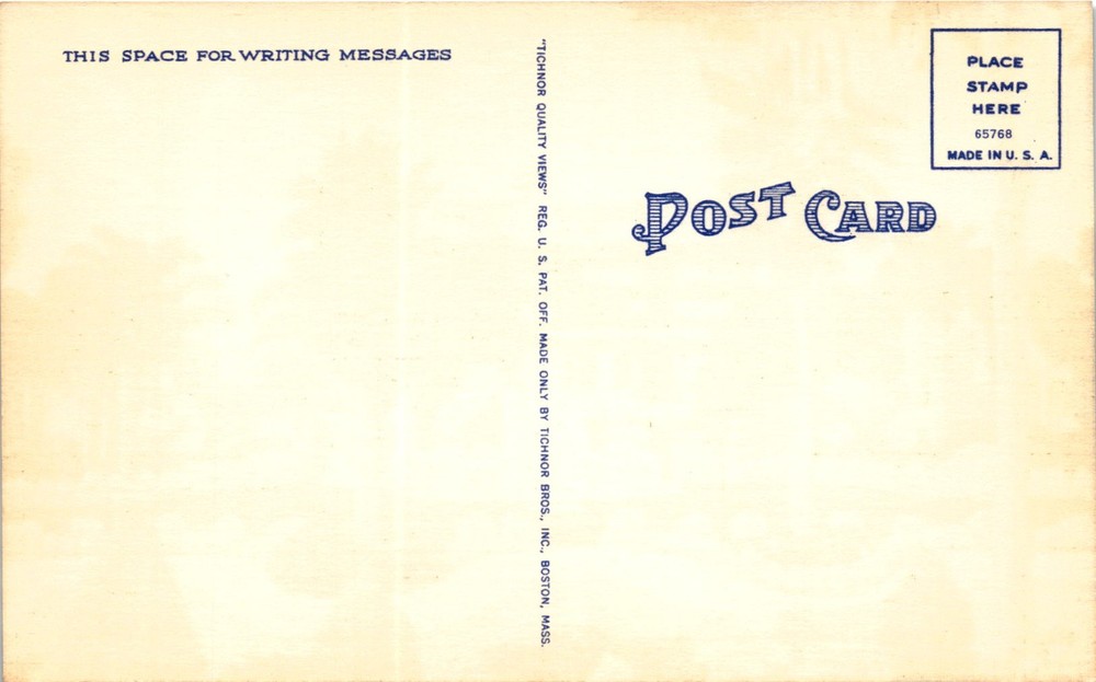 MAKE AN OFFER. THE MORE YOU BUY THE BETTER DEAL I WILL ACCEPT The postcard is likely a vintage Tichnor Quality Views postcard made by Tichnor Bros., Inc. in Boston, Massachusetts. The front of the postcard includes a space for writing messages, a place for a stamp, and a unique serial number 65768.