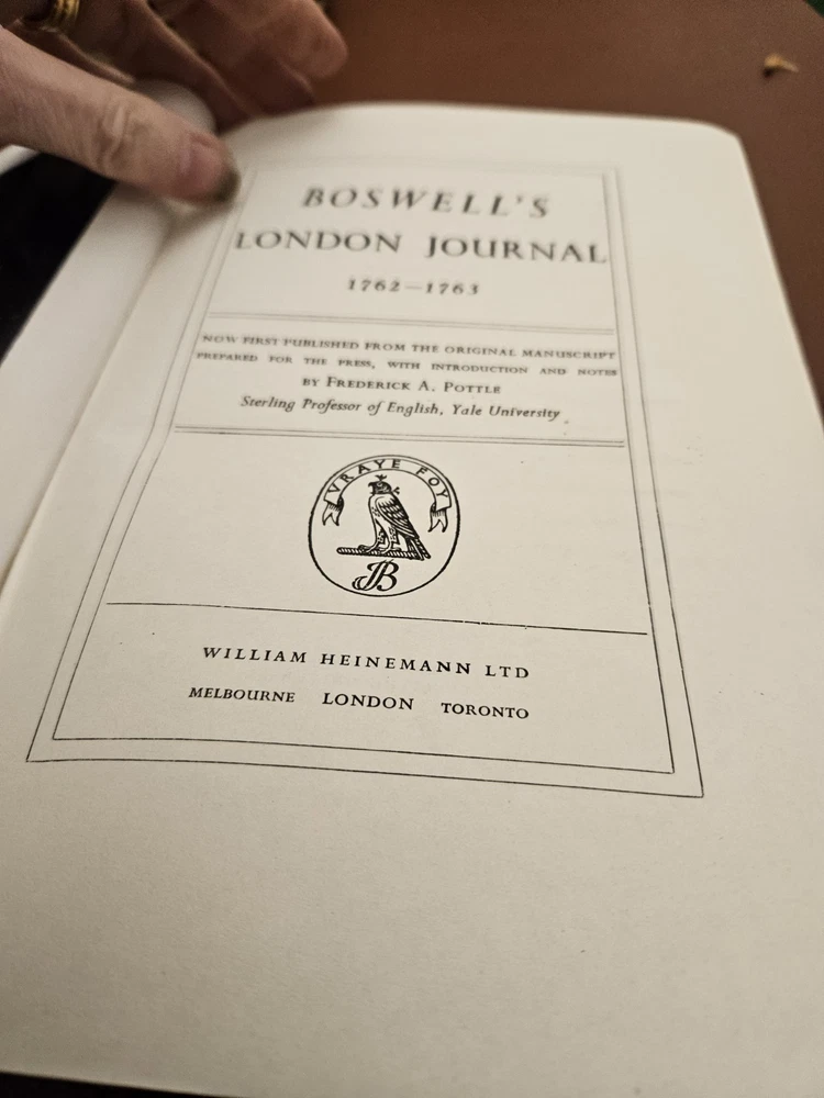 Boswell's London Journal 1762-1763 (1951) Antique Book. Heinemann.