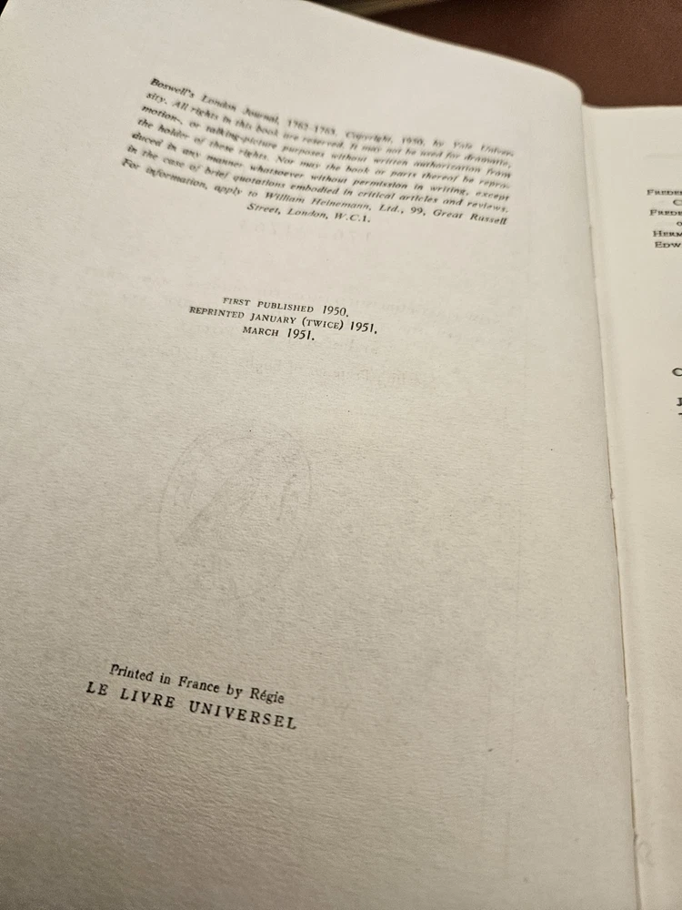 HomeBoswell's London Journal 1762-1763 (1951) Antique Book. Heinemann.