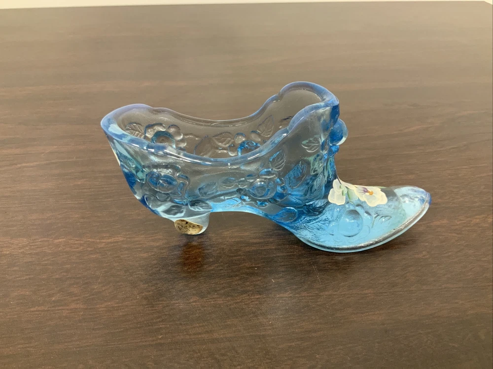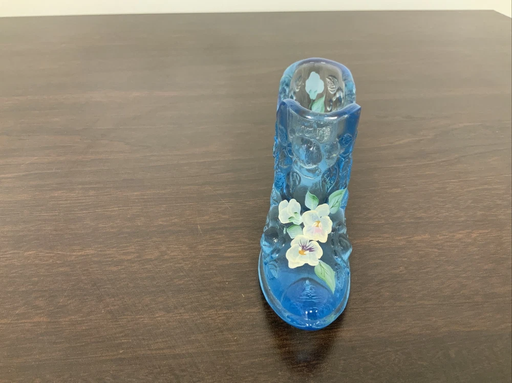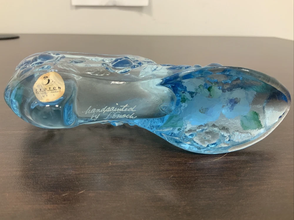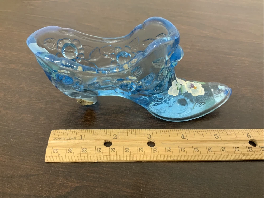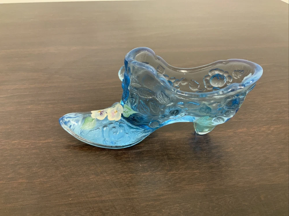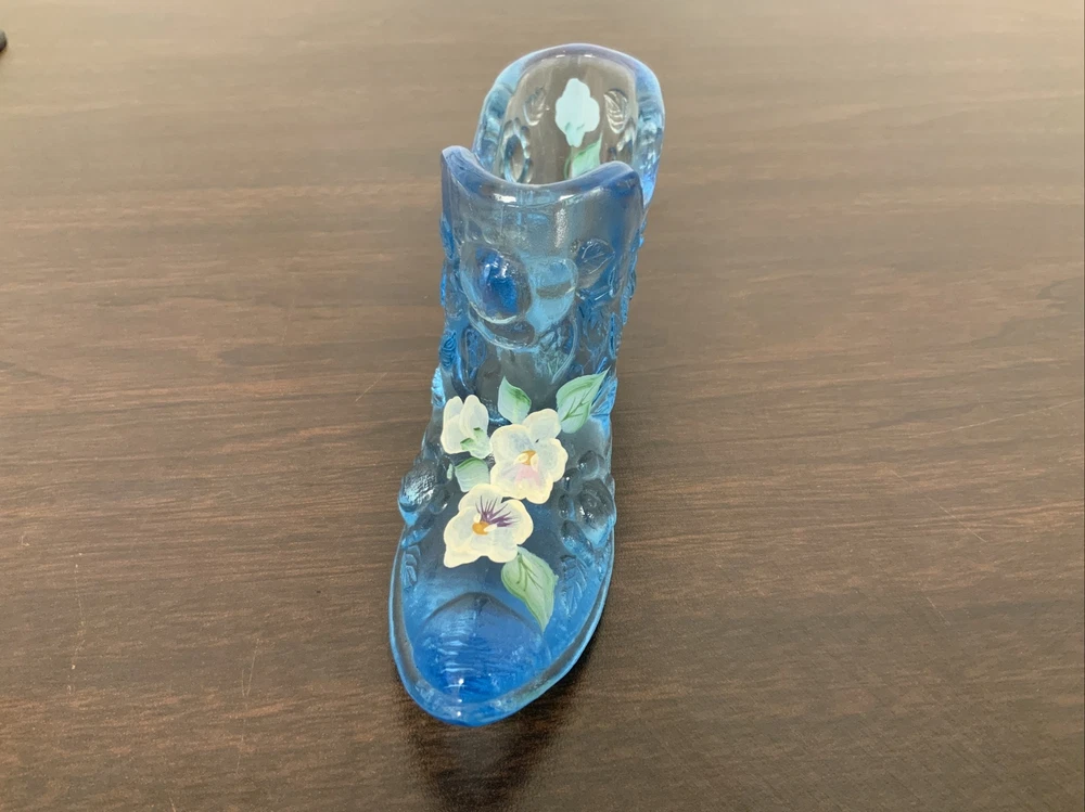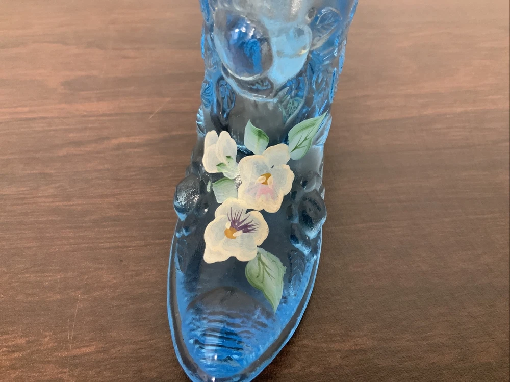 FENTON Cabbage Rose Aqua Blue Boot HAND-PAINTED 5.5" Victorian by F. Enoch Shoe Used condition. No chips or cracks. Original sticker still on but lifting up on sides. Please see pictures.