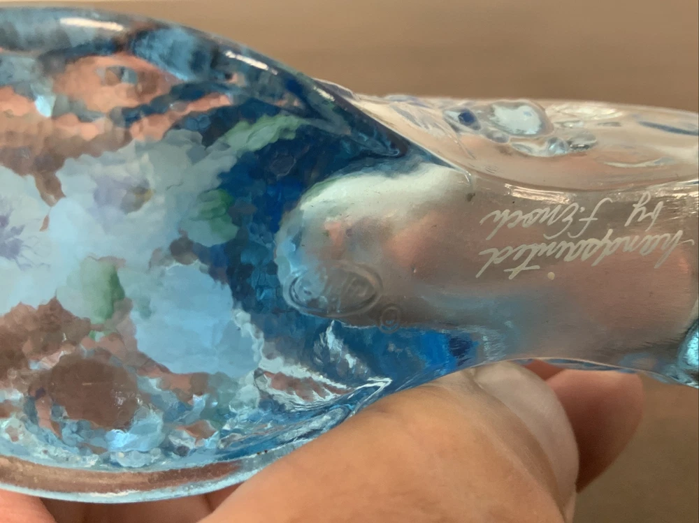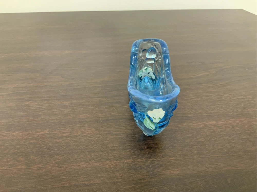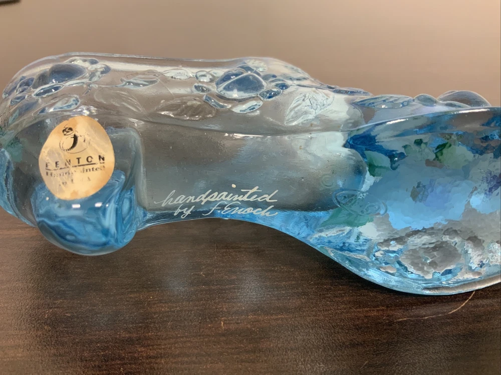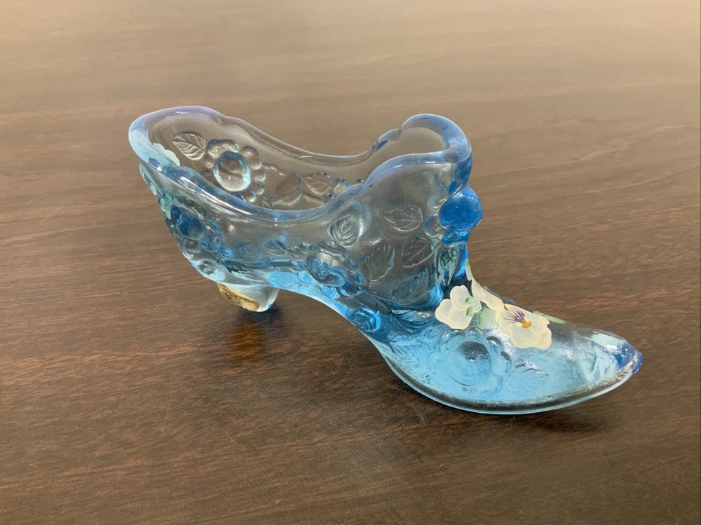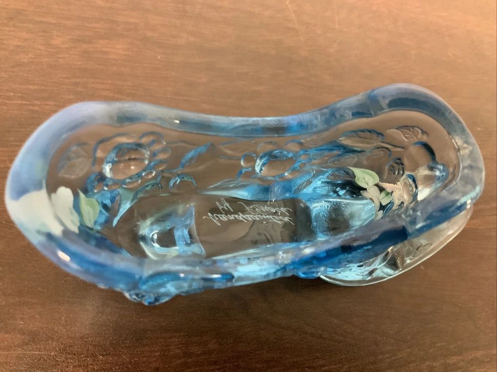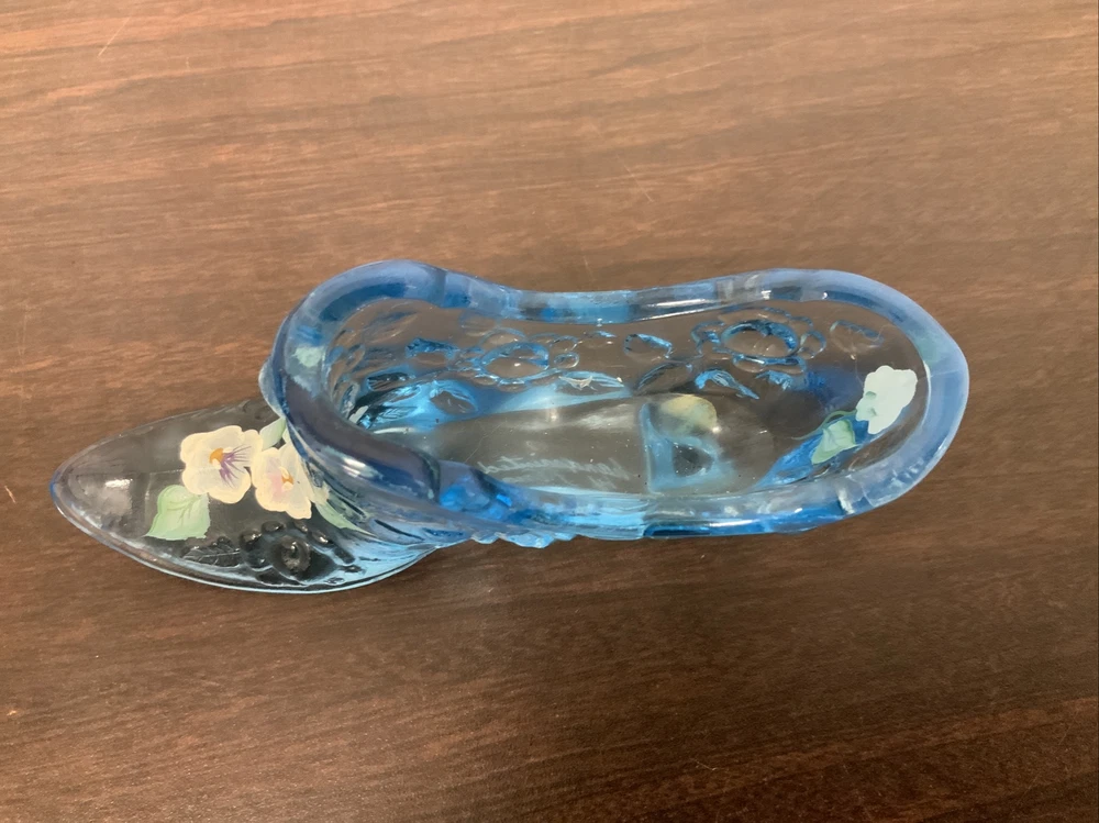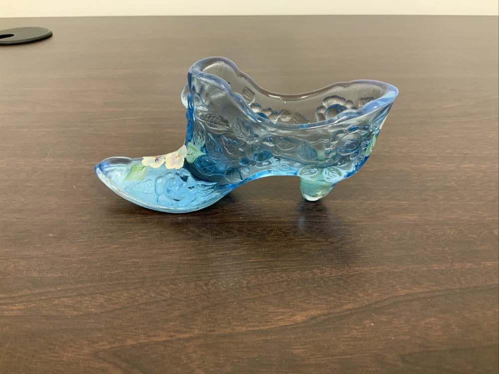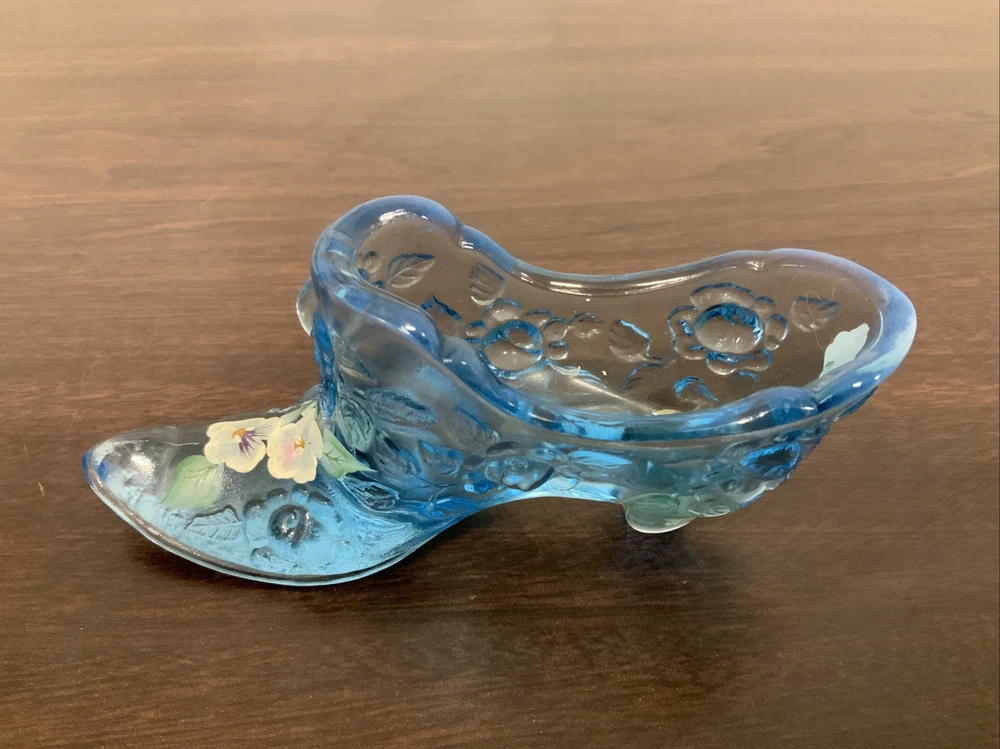 FENTON Cabbage Rose Aqua Blue Boot HAND-PAINTED 5.5" Victorian by F. Enoch Shoe Used condition. No chips or cracks. Original sticker still on but lifting up on sides. Please see pictures.
