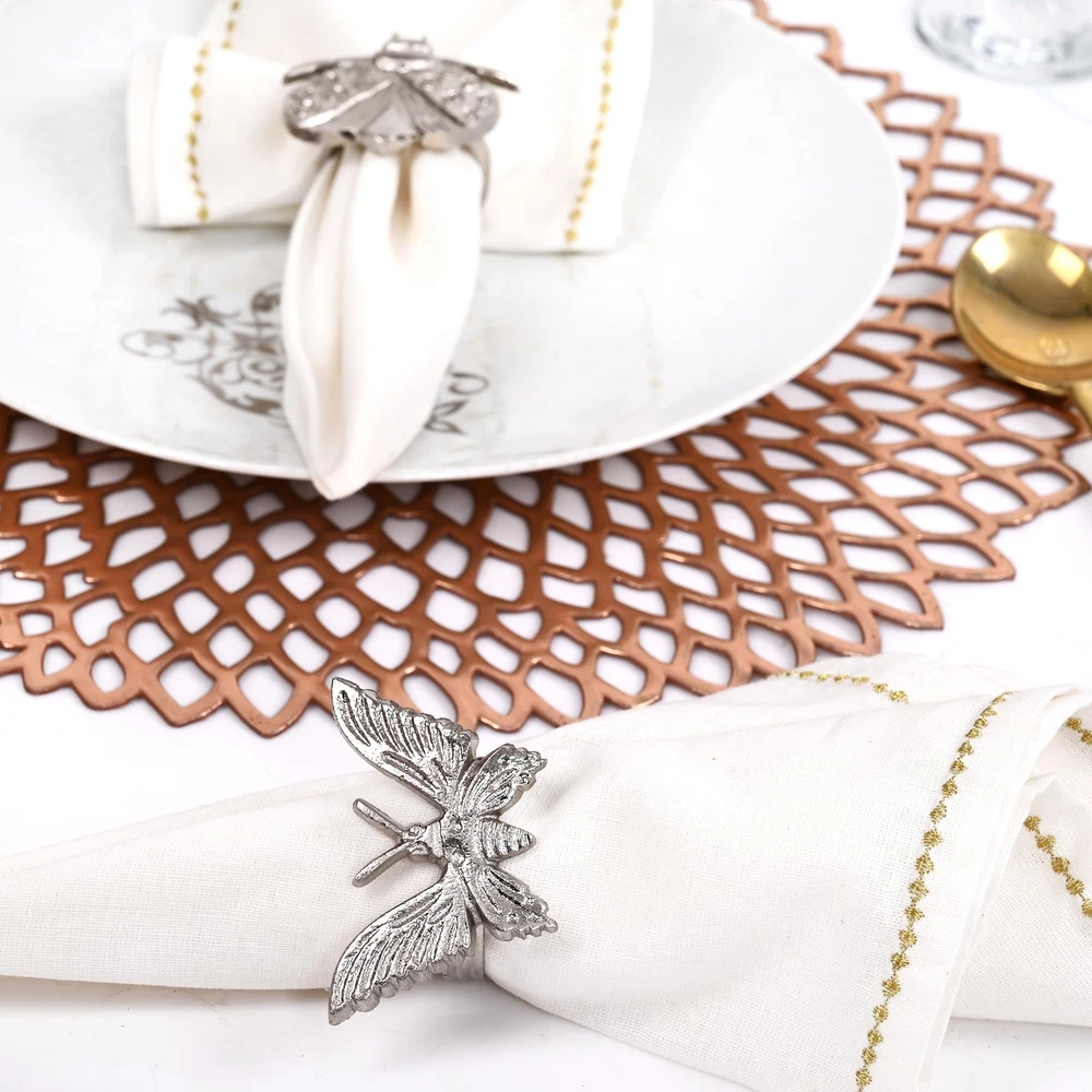 PACKAGE INCLUDE :- 12 x Napkin Ring. ATTRIBUTES: - These Handcrafted item will gives a impression of accent flair to any table at your farmhouse, home, living room, dining room, kitchen, garden, etc.FEATURES: - These Napkin Ring is ideal for all wedding, holidays, caterings, dinners, brunches, family gatherings, everyday use, special occasions and more. DURABILITY: - They can be used day after day to yearly long without any complication or complained.CARE TO BE TAKEN: - Gently Dry Damp Wash only to remove stain or dust. STANDARD SIZE:- A Set of 12 Napkin Rings with 1.5" ring diameter, to showcase your tabletop for family & guests. Suitable for all napkins to decorate your monotonous table setting which is nice enough to use again and again. EASY TO USE:- This napkin rings can be easy dressed up or down to create the perfect setting of your table. Sturdy quality and exquisite workmanship to ensure the napkin won't hurt and its perfect in regular use. Just wipe clean with a soft cloth if it is dirty. FIT FOR EVERY OCCASION: - Whether it is a formal dinner, a wedding reception, family dinner, Banquet Events,everyday dining, Celebrations, Thankgiving or Chrismas, these decorative napkin rings are a perfect fit for every occasion. You can also send these decorative napkin rings as a gift to your loved ones. EXCELLENT QUALITY AND MATERIAL: The rings are well made, mid-weight, boast consistent finish, and a high level of attention to details - ideal for both casual & formal settings. Our flawless smooth metal napkin ring let you put together and do much more such things. GUARANTEED SATISFACTION : Upgrade your dining experience with this cute napkin rings without any worries. NOTE : This handcrafted product may have slight variations in color, size, and weight compared to the images and details provided. Each item is unique, showcasing its individual craftsmanship.