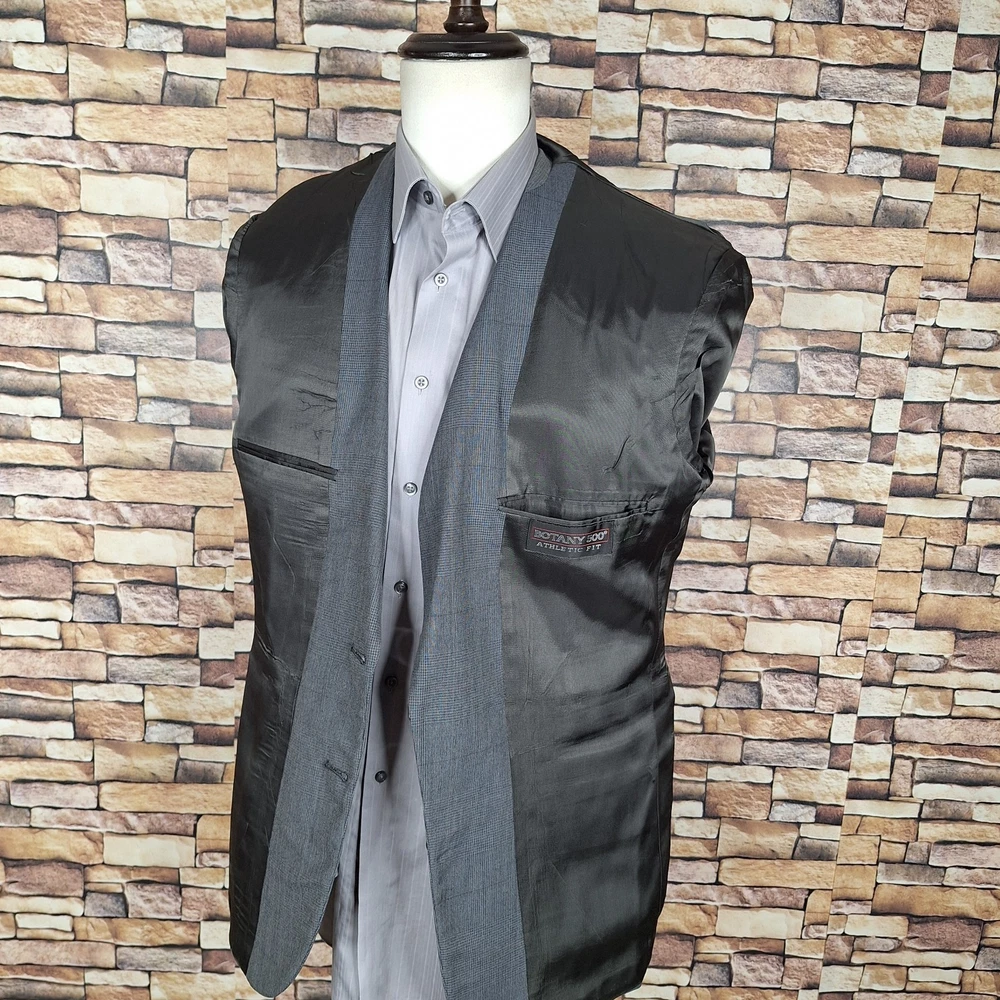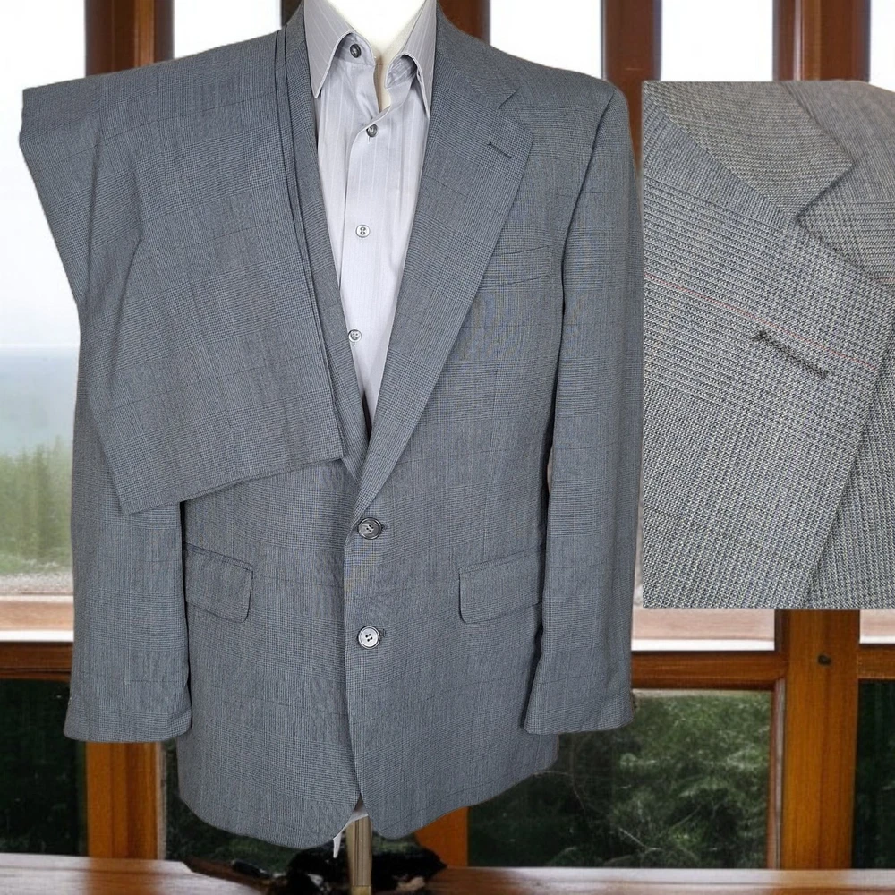 Jacket Sleeve Button Style: Four-Button Jacket Cut: Single-Breasted Country of Origin: United States Seller Notes: “Quality used condition. Please check out the measurements before buying to ensure a perfect fit.” Features: Inner Pockets Front Type: Pleated Type: Suit Size Type: Regular Pattern: Plaid gtin13: Does not apply Inseam: 31 in Jacket/Coat Length: Regular Department: Men Chest Size: 40 Season: Fall, Spring, Summer, Winter Size: 40 Handmade: No Number of Pieces: 2 Piece Waist Size: 33 in UPC: Does not apply Jacket Vent Style: Single-Vented Color: Gray Fit: Athletic Vintage: Yes Style: 2 Piece Theme: Classic, Designer, Elegant, Modern, Preppy, Wedding Jacket Front Button Style: Two-Button Occasion: Business, Casual, Formal, Party/Cocktail, Travel, Wedding Jacket Lapel Style: Notch Lining Material: Acetate Brand: Botany 500 Garment Care: Dry Clean Only Personalize: No