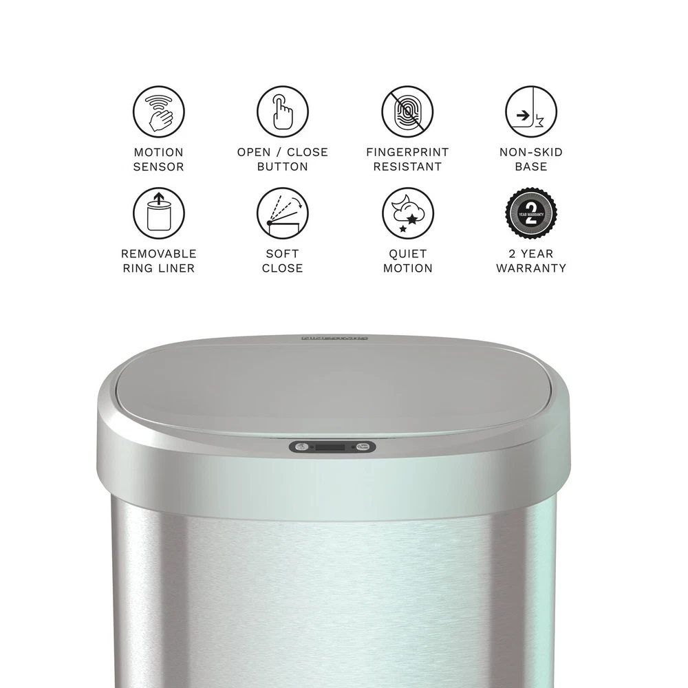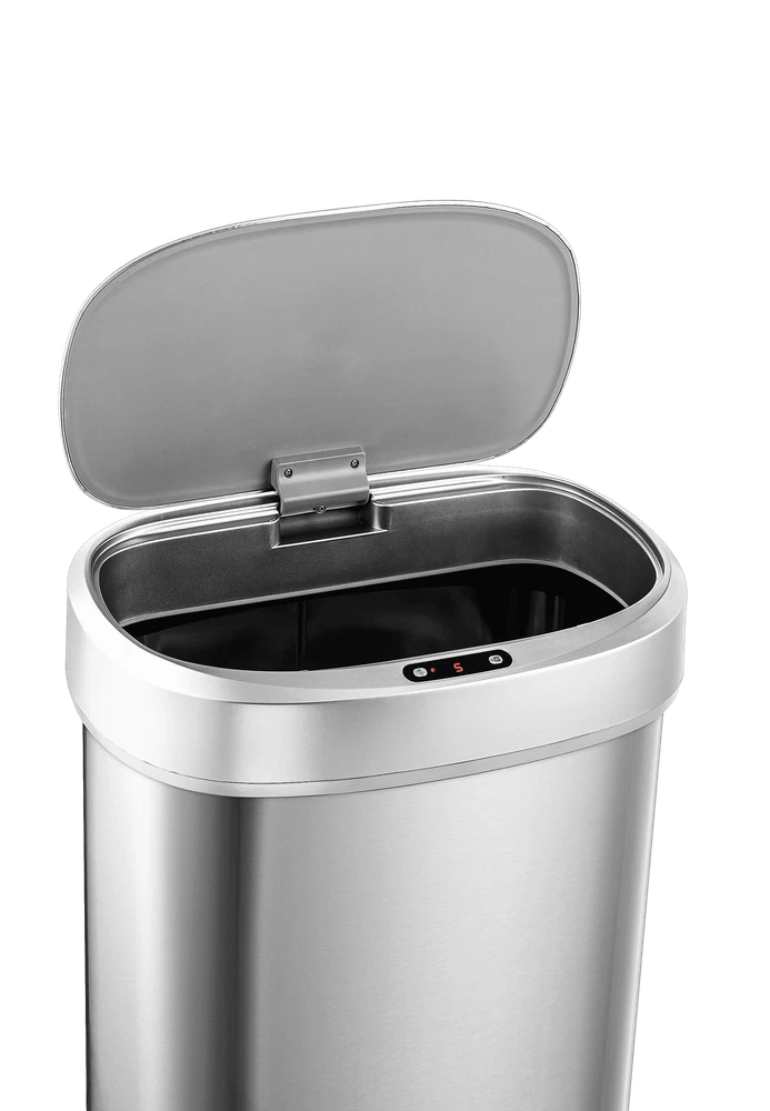Equipped with leading motion sensor technology, the dzt-50-49 motion sensor stainless steel trash can represents the ideal blend of form and function. Improve your living space, protect yourself from germs, and keep your hands free for the things that really matter. This unit has a total capacity of 13.2 gallons (50 liters), so it is large enough to accommodate your entire family and makes it perfect for kitchen, office, or public areas. Features: The hands-free lid opens with a simple wave of the hand. A removable ring liner keeps the trash bag securely in place and hidden from sight. Quiet motion soft-close lid with count-down timer, adjustable sensor, and a battery life indicator. Advanced infrared technology preserves motion sensor battery life. Non-skid base keeps your floor protected. Requires 3 "D" batteries (not included). Stainless steel body and lid. On Nov 25, 2024 at 19:57:21 PST, seller added the following information: