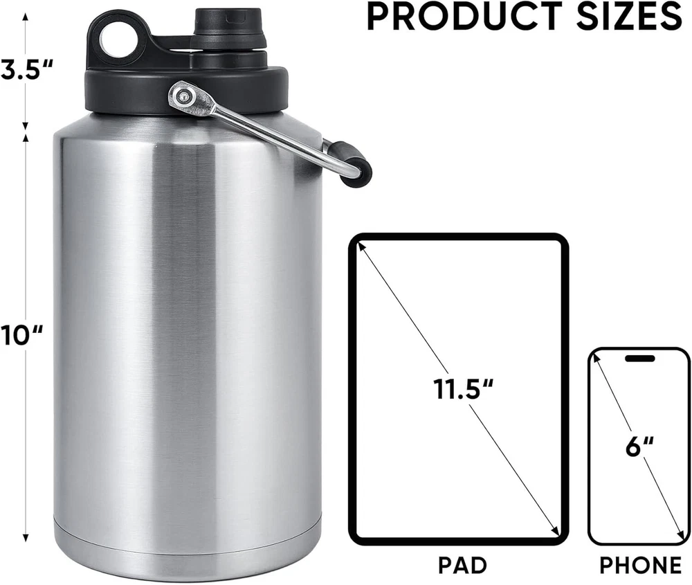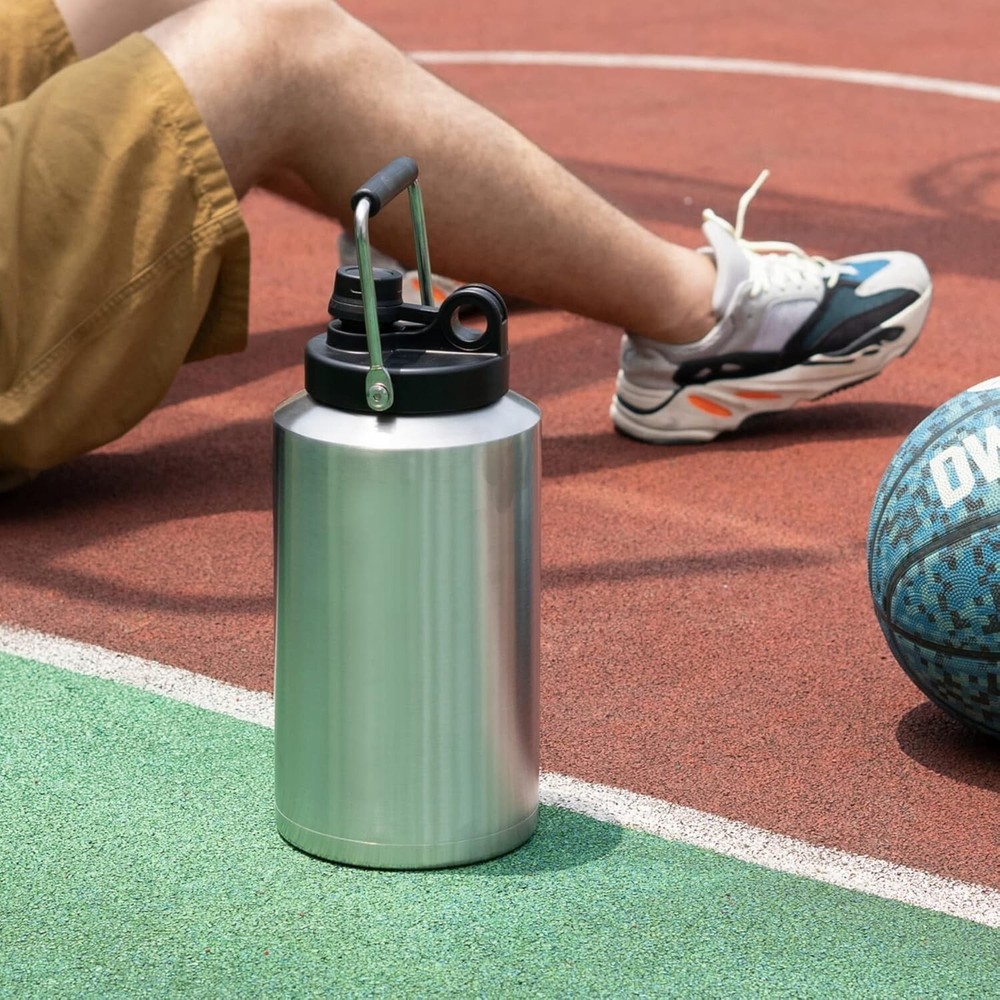 Botella de agua de doble vacío, 128 oz de acero inoxidable, resistente al sudor 💧CAPACIDAD EXTRA GRANDE: Vaso de agua de gran capacidad de 375 ml, ideal para una salida familiar de camping. Te permite mantenerte hidratado durante todo el día y combatir el calor abrasador. 💧AISLAMIENTO AL VACÍO: Hervidor con aislamiento al vacío de doble capa que mantiene los líquidos fríos hasta 48 horas o calientes hasta 24 horas. Esta botella de agua de 3.8 litros está fabricada con tecnología antitranspirante con recubrimiento en polvo, lo que facilita su agarre incluso después de un ejercicio intenso. 💧MATERIAL PREMIUM: Nuestra botella de agua térmica de 3.8 litros está hecha de plástico 100 % libre de BPA y acero inoxidable 18/8 de grado alimenticio. No deja sabor metálico ni se oxida. PRÁCTICA Y VERSÁTIL: Esta garrafa cuenta con una tapa de 10 cm de ancho para rellenarla fácilmente y una tapa a prueba de fugas que evita derrames. Además, es muy fácil de transportar y manejar gracias a su práctica asa. Esto la hace ideal para actividades al aire libre, camping, deportes y mucho más.