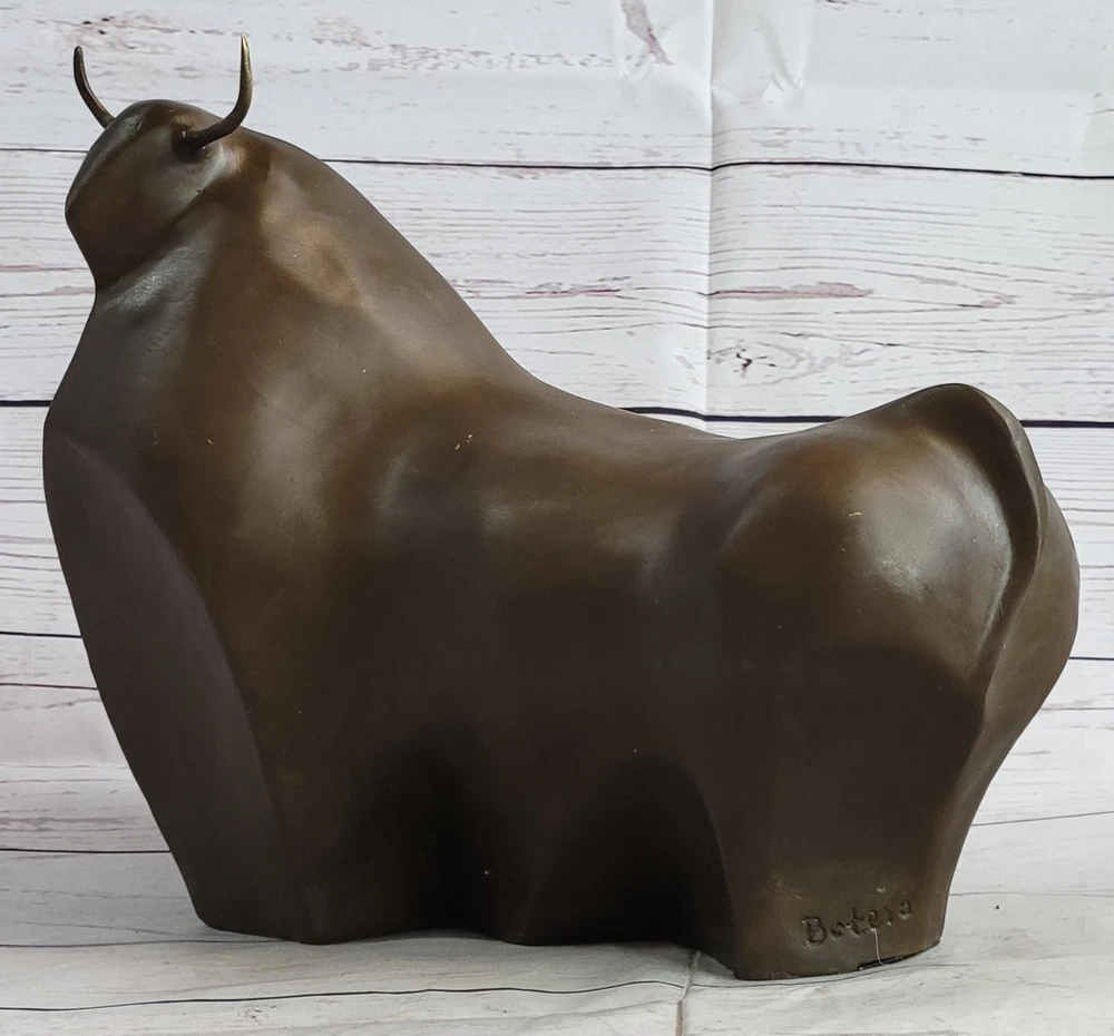 Botero Tribute Spanish BULL Wall Street Stock Market Bronze Statue Matador Sale Botero Tribute Spanish BULL Wall Street Stock Market Bronze Statue Matador Sale Condition : This sculpture is in a perfect condition. Bronze Dimensions: Height 7" X Width 10" Weight:5 LBS Inventory:27AL3995972 Experience a captivating reinterpretation of Botero's iconic style through this striking bronze sculpture. Capturing the essence of abstract art, the piece presents a large bull with exaggerated proportions that uniquely blend abstraction and appreciation for the animal form. This masterpiece is a perfect gift choice for both bull enthusiasts and animal lovers who admire bold artistic expressions. Fernando Botero, the renowned Colombian figurative artist, has left an indelible mark on the art world with his distinctive style. Recognized as a prominent Colombian artist, Botero's fame skyrocketed after winning the first prize at the Sal de Artistas Colombianos in 1958. Based primarily in Paris, his work has gained international acclaim, gracing museums, private collections, and corporate spaces worldwide. This bronze sculpture exemplifies Botero's signature approach, fusing abstract elements with his unique representation of reality. Through skillful manipulation of shape and volume, the artist brings a remarkable tactile quality and allure to the sculpture. Crafted using the revered lost-wax casting method, this three-dimensional artwork captures Botero's essence while paying homage to his exceptional talent. The sculpture stands as a testament to Botero's artistic legacy and is a must-have for devoted enthusiasts of his work. It invites you to engage with art in a new and thought-provoking way, making a bold statement wherever it is displayed. This captivating bronze sculpture celebrates the fusion of abstract art and animal appreciation, reflecting Botero's unparalleled creative vision. Modern Art Abstract Bull Bronze Figurine BOTERO Statue Sculpture Figurine Figure www.bronzhaus.com Video will open in a new window Using the eBay App? Paste link into a browser window: [isdntekvideo] Shipping Terms : Most of our items are shipped via USPS (United States Postal Service) mail or UPS. Most orders are shipped within 24-48 hours of purchase. Please be aware that not all items are available for USPS shipping due to size and weight. We do ship to Hawaii, Alaska, Canada, Puerto Rico, APO/AE, and U.S. Virgin Islands, however, an additional charge may be required. Please contact us before making any purchases in these areas. For Non-USA customers, you may be responsible for all duty, tax, brokerage fees that may be due upon delivery (shipping costs cover freight charges only). We also ship internationally. Please refer to the "Shipping and Handling" chart for the rates for each area. Payment : We accept just about any form of payment. PayPal, Master Card, Visa or American Express credit cards. Money orders, cashiers checks, and even personal or business checks. For governmental institutions, we will also accept a purchase order. Please understand that for personal or business checks we have to wait for the check to clear (usually 7 days) before shipping. Condition : New Detailed Hand Crafted Hot Cast Bronze Satisfaction Guaranteed. This is Stock Photo, Slight Color Variation!! Listing and template services provided by inkFrog