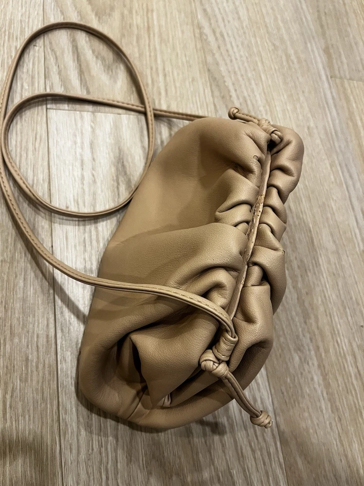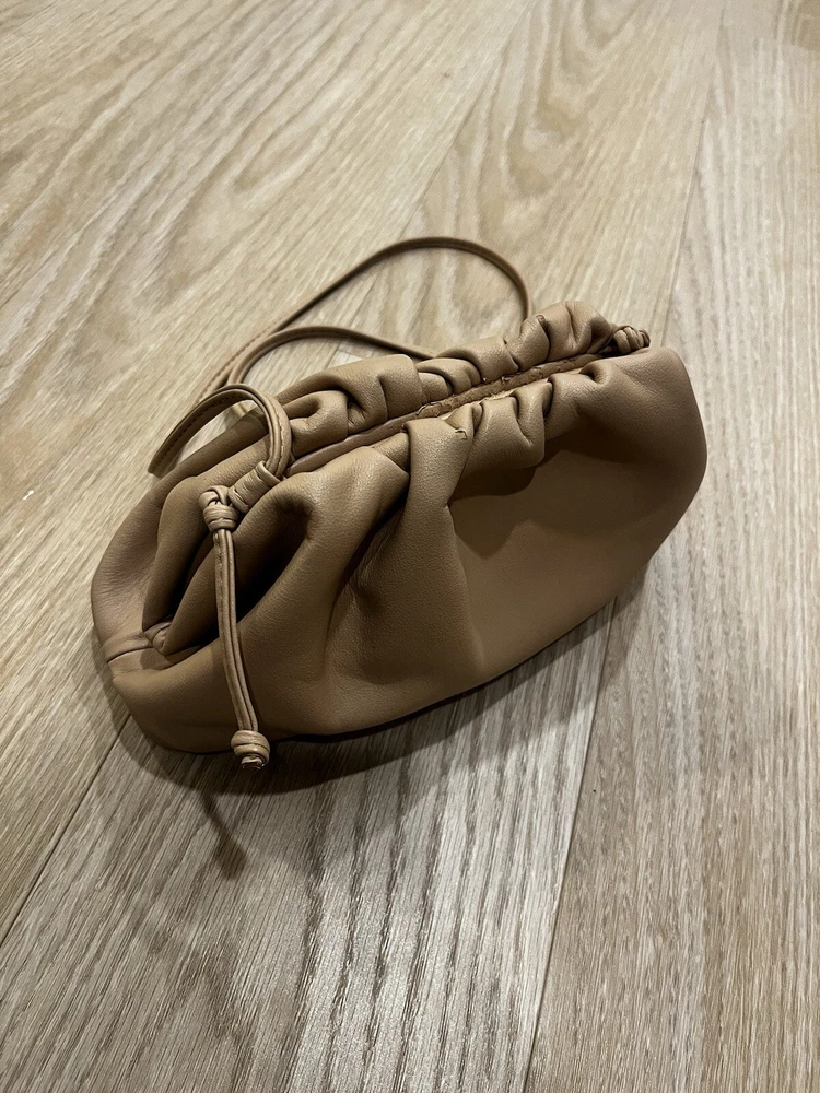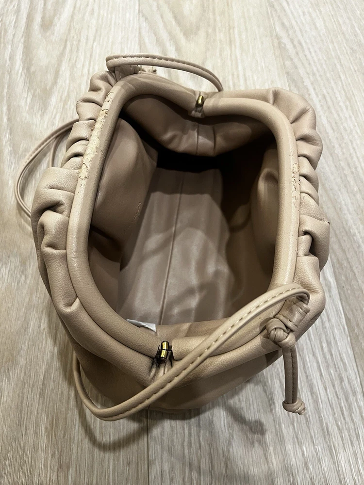 Bottega Veneta - Beige Mini Pouch Clutch - Calfskin - Pre-Owned. Condition is Pre-owned. Shipped with USPS Ground Advantage.