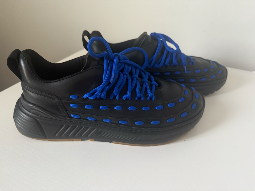 Bottega Veneta Black Blue Leather Sneakers Men Size 42 US 8.5