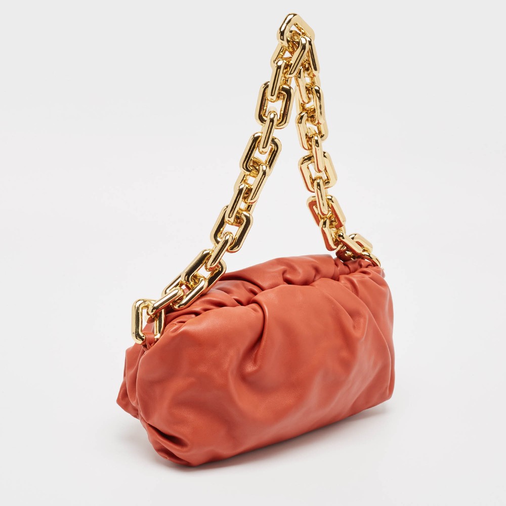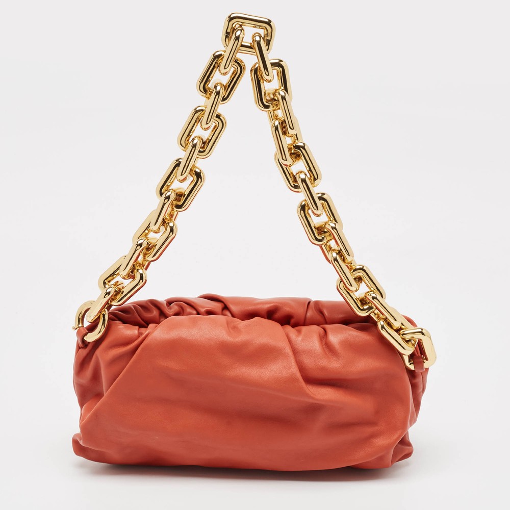 Bottega Venetas Daniel Lee added a chunky chain strap to the already iconic Pouch bag. Made in Italy from supple leather in a versatile brown hue, its gathered and fastens with a magnetic closure at the top. Carry it around and get admiring glances.Certified by The Luxury Closet - This item has gone through a detailed authentication process overseen by our experts. We offer a lifetime guarantee of authenticity on all our items. Import duties, taxes and charges are not included in the item price. These charges are the buyers responsibility. Please check with your country’s customs office to determine what these additional cost will be prior to buying. Our eBay Store About Us Contact Us Add to Favorite Sellers Bottega Veneta Brown Brick Leather Leather The Chain Pouch Bag $1014.2 Bottega Venetas Daniel Lee added a chunky chain strap to the already iconic Pouch bag. Made in Italy from supple leather in a versatile brown hue, its gathered and fastens with a magnetic closure at the top. Carry it around and get admiring glances. Product Details Brand Color Brown Dimensions Height: 15 cm, Width: 10 cm, Length: 30 cm Material Leather Size Outsole Width Outsole Length Heel Height Includes Original Dustbag Certified by The Luxury Closet This item has gone through a detailed authentication process overseen by our experts. We offer a lifetime guarantee of authenticity on all our items. How We Check The in-house team of experts at The Luxury Closet is highly trained to verify the authenticity and the condition of the luxury products. They ensure that only 100% authentic items are put on sale.The evaluation process is unique with its own mix of assessment criteria and differs according to the category. Each item is evaluated based on the following combination of hallmarks, hardware, stitching, symmetry, material, craftsmanship, stamping, codes, hologram stickers, and packaging. Our authenticators also check if the items have been modified or amended (e.g., aftermarket diamonds, replaced batteries, repaired bags, etc.) International Buyers Import duties, taxes and charges are not included in the item price. These charges are the buyers responsibility. Please check with your country’s customs office to determine what these additional cost will be prior to buying.