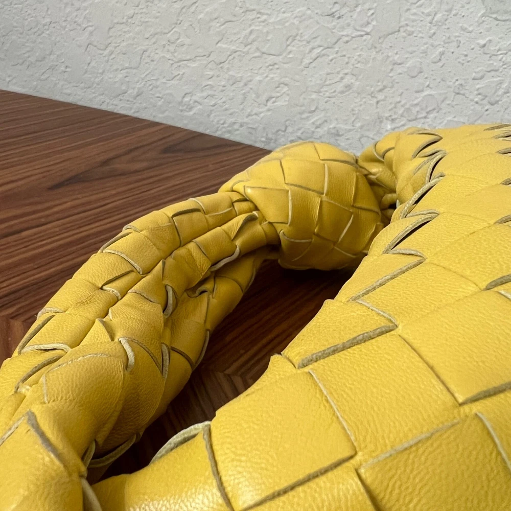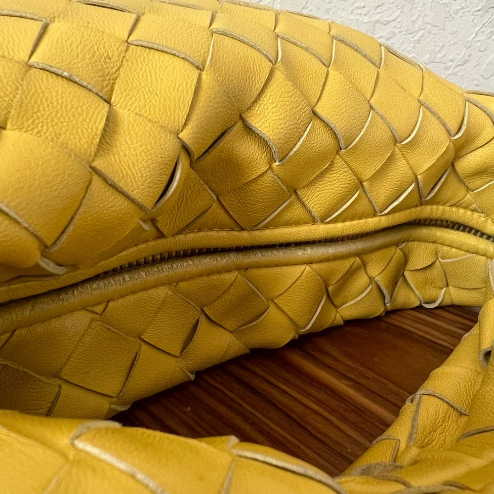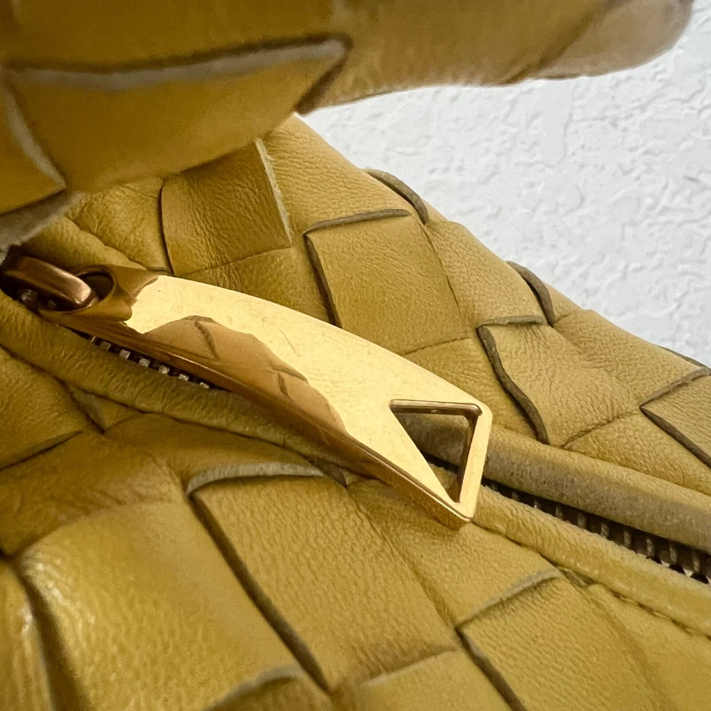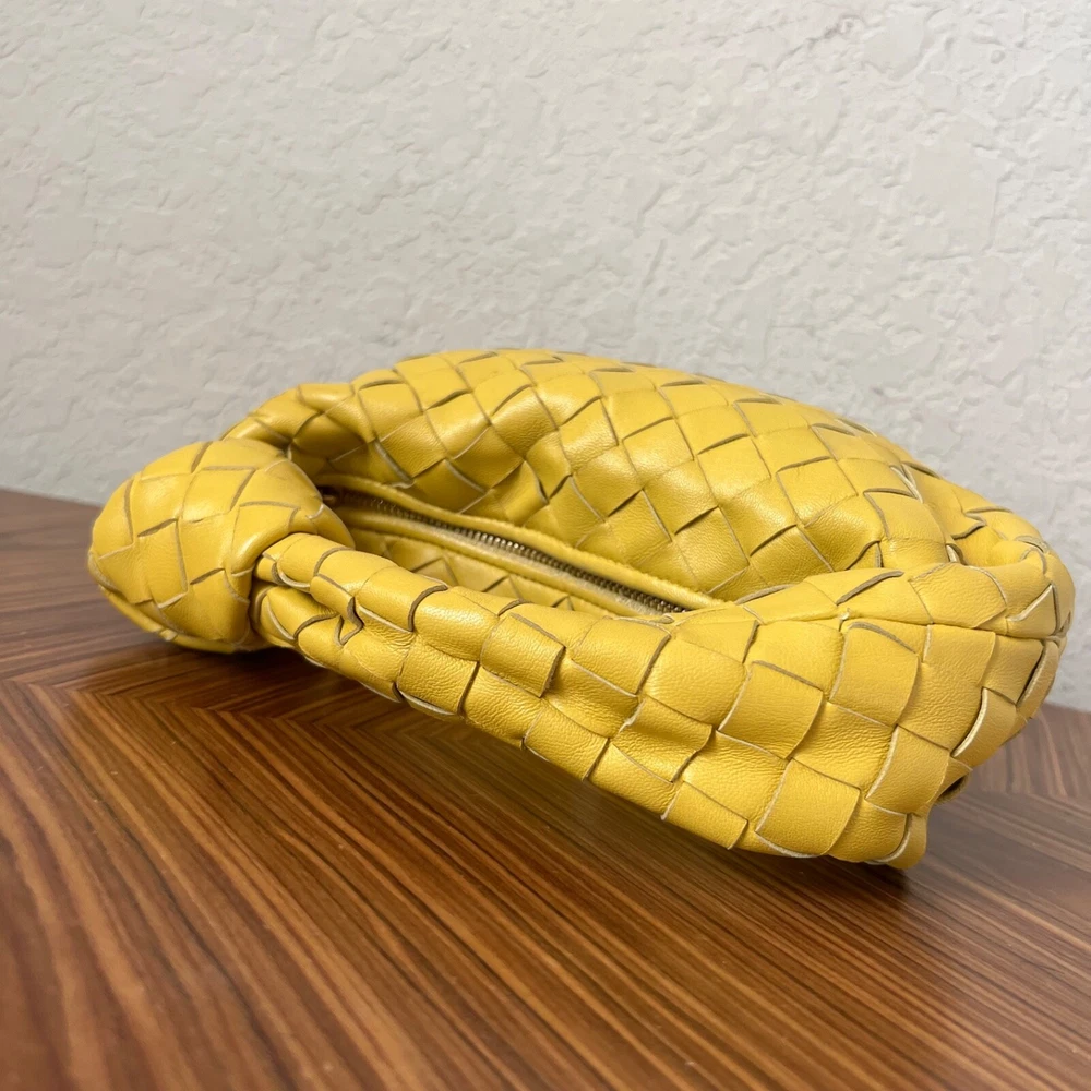 Bottega Veneta Nappa Intrecciato Mini Jodie Handbag Buttercup Very good condition (clean leather interior, clean leather body, rubbing at the opening, zipper runs smoothly, no cracks, no odors) Serial number B09370197P Dimensions 10x6x2in