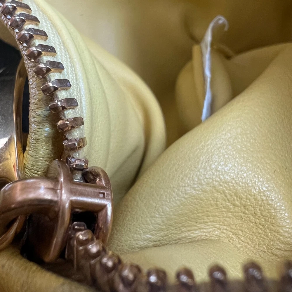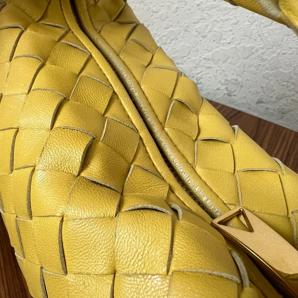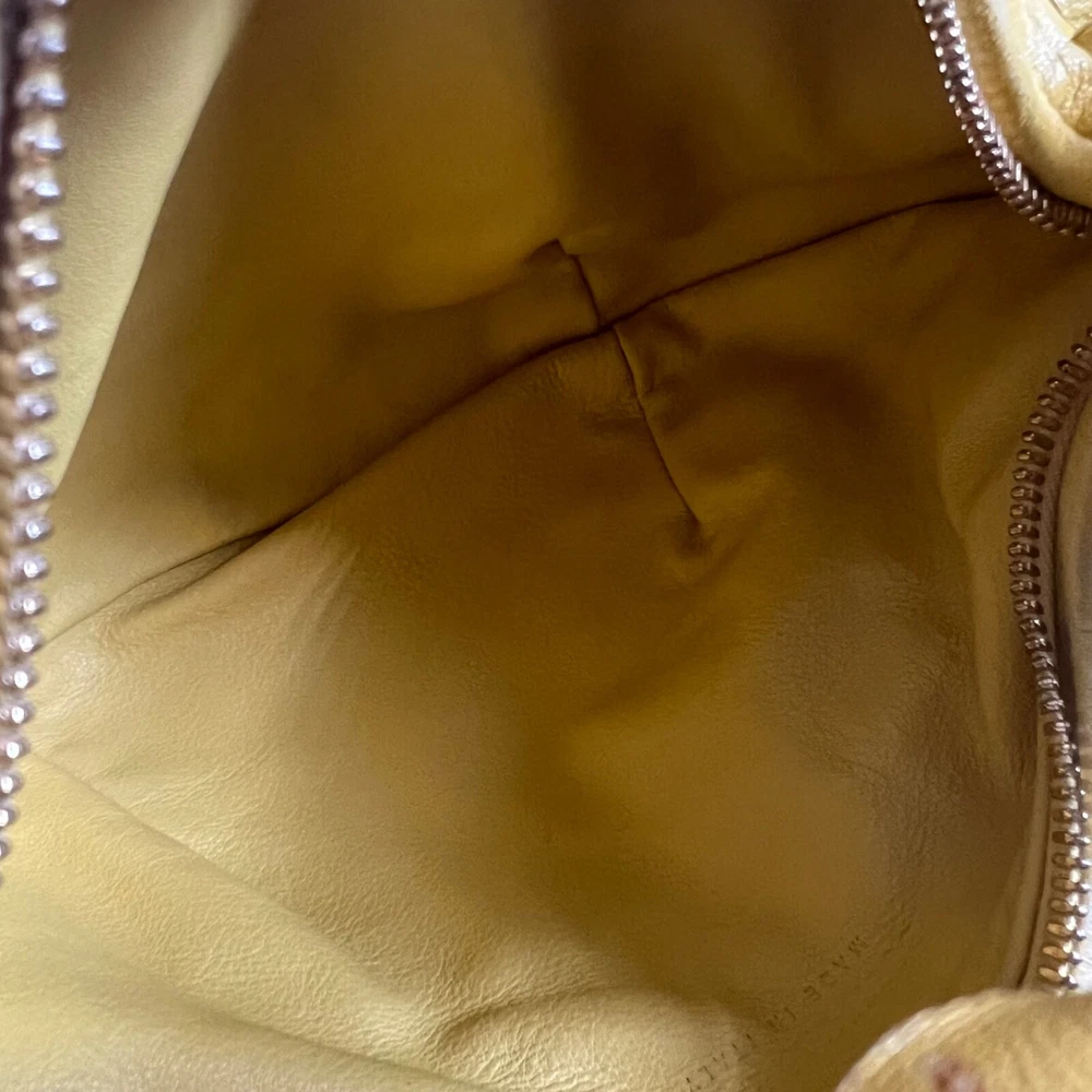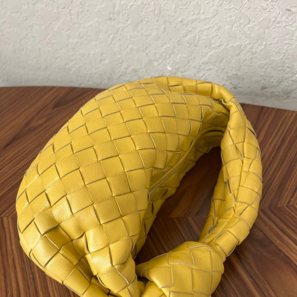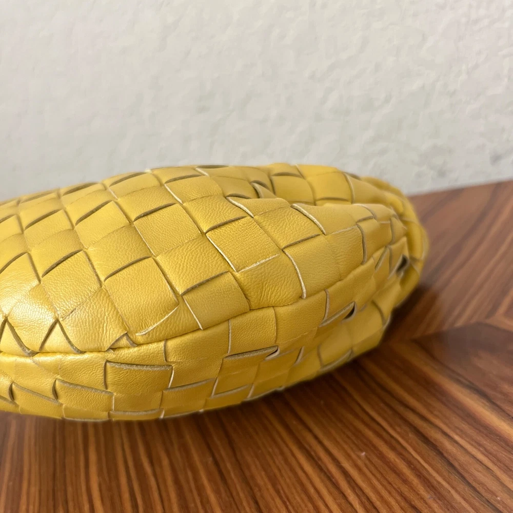 Bottega Veneta Nappa Intrecciato Mini Jodie Handbag Buttercup Very good condition (clean leather interior, clean leather body, rubbing at the opening, zipper runs smoothly, no cracks, no odors) Serial number B09370197P Dimensions 10x6x2in