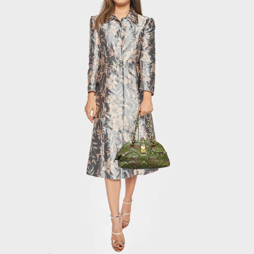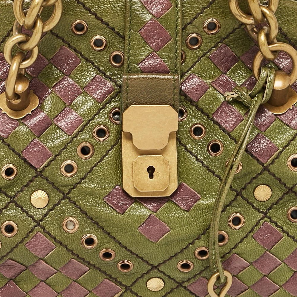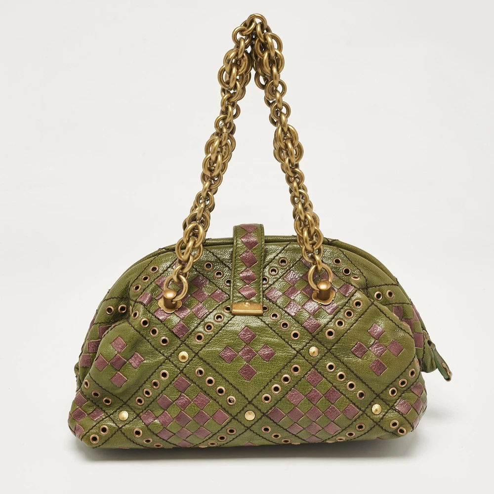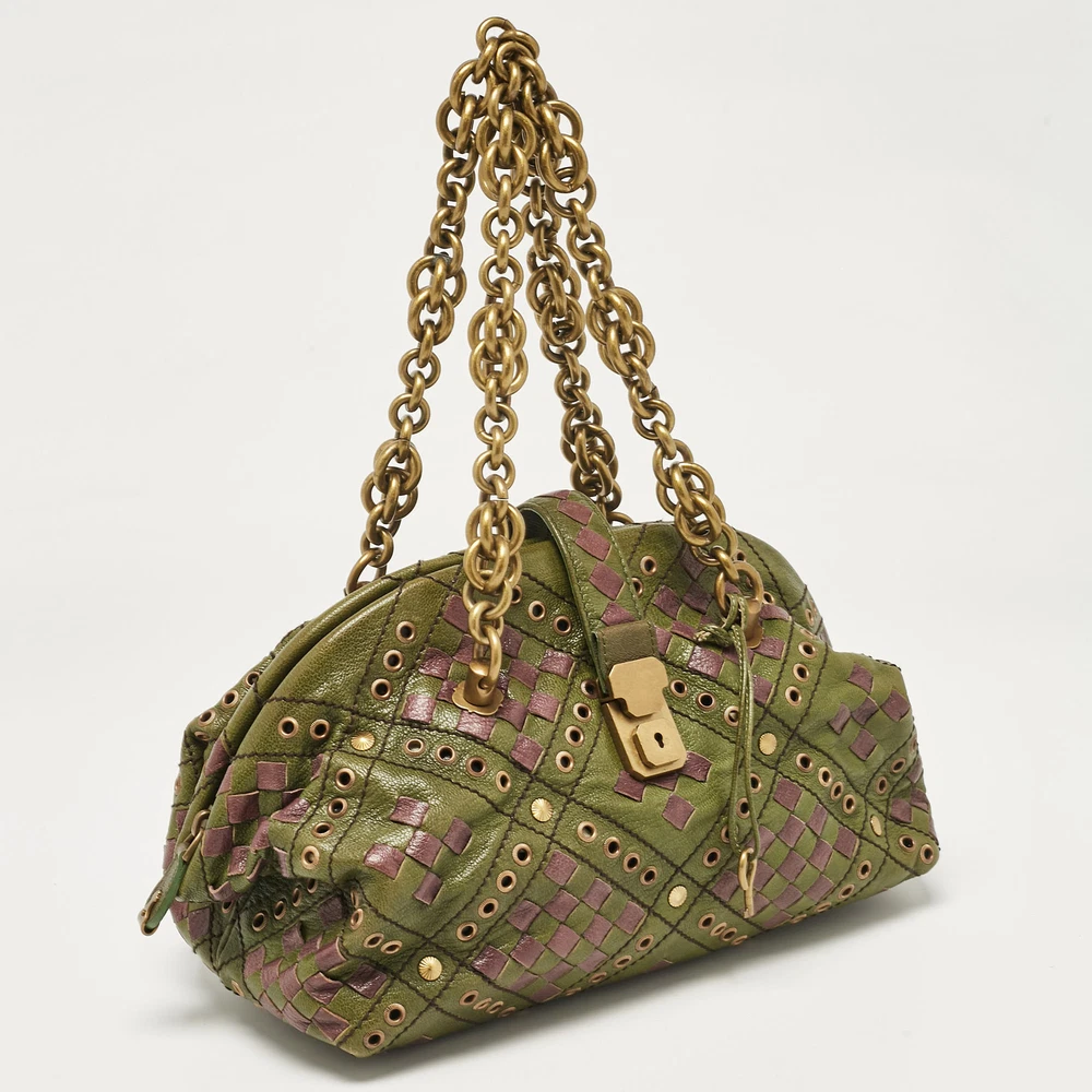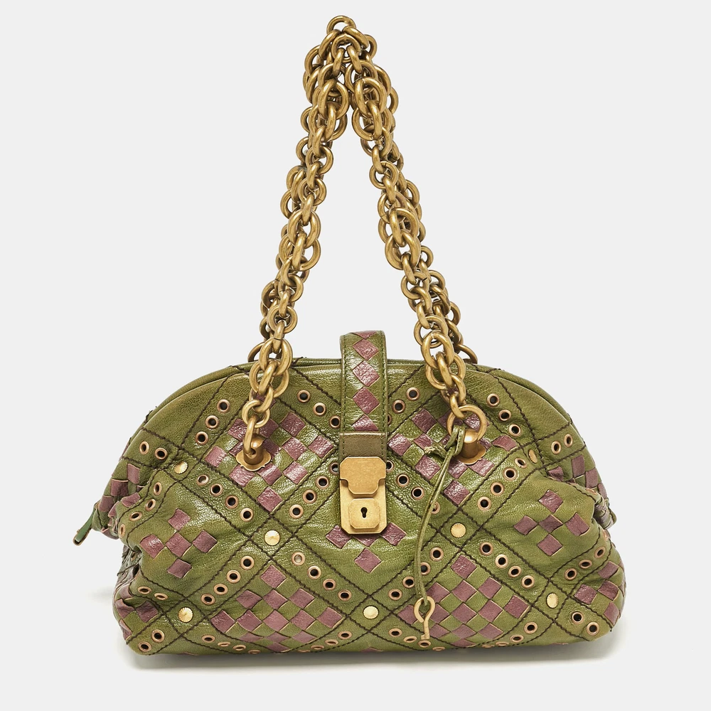 Functional and stylish, this designer labels collections capture the effortless, elegant finesse of the modern woman. Crafted from quality materials, this chic bag is easy to carry and can fit in your daily essentials effortlessly.Certified by The Luxury Closet - This item has gone through a detailed authentication process overseen by our experts. We offer a lifetime guarantee of authenticity on all our items. Import duties, taxes and charges are not included in the item price. These charges are the buyers responsibility. Please check with your country’s customs office to determine what these additional cost will be prior to buying. Our eBay Store About Us Contact Us Add to Favorite Sellers Bottega Veneta Green/Purple Intrecciato Leather Bowler Bag $843.7 Functional and stylish, this designer labels collections capture the effortless, elegant finesse of the modern woman. Crafted from quality materials, this chic bag is easy to carry and can fit in your daily essentials effortlessly. Product Details Brand Color Green Dimensions Height: 18 cm, Width: 15 cm, Length: 27.5 cm Material Leather Size Outsole Width Outsole Length Heel Height Includes The Luxury Closet Packaging, Key Certified by The Luxury Closet This item has gone through a detailed authentication process overseen by our experts. We offer a lifetime guarantee of authenticity on all our items. How We Check The in-house team of experts at The Luxury Closet is highly trained to verify the authenticity and the condition of the luxury products. They ensure that only 100% authentic items are put on sale.The evaluation process is unique with its own mix of assessment criteria and differs according to the category. Each item is evaluated based on the following combination of hallmarks, hardware, stitching, symmetry, material, craftsmanship, stamping, codes, hologram stickers, and packaging. Our authenticators also check if the items have been modified or amended (e.g., aftermarket diamonds, replaced batteries, repaired bags, etc.) International Buyers Import duties, taxes and charges are not included in the item price. These charges are the buyers responsibility. Please check with your country’s customs office to determine what these additional cost will be prior to buying.