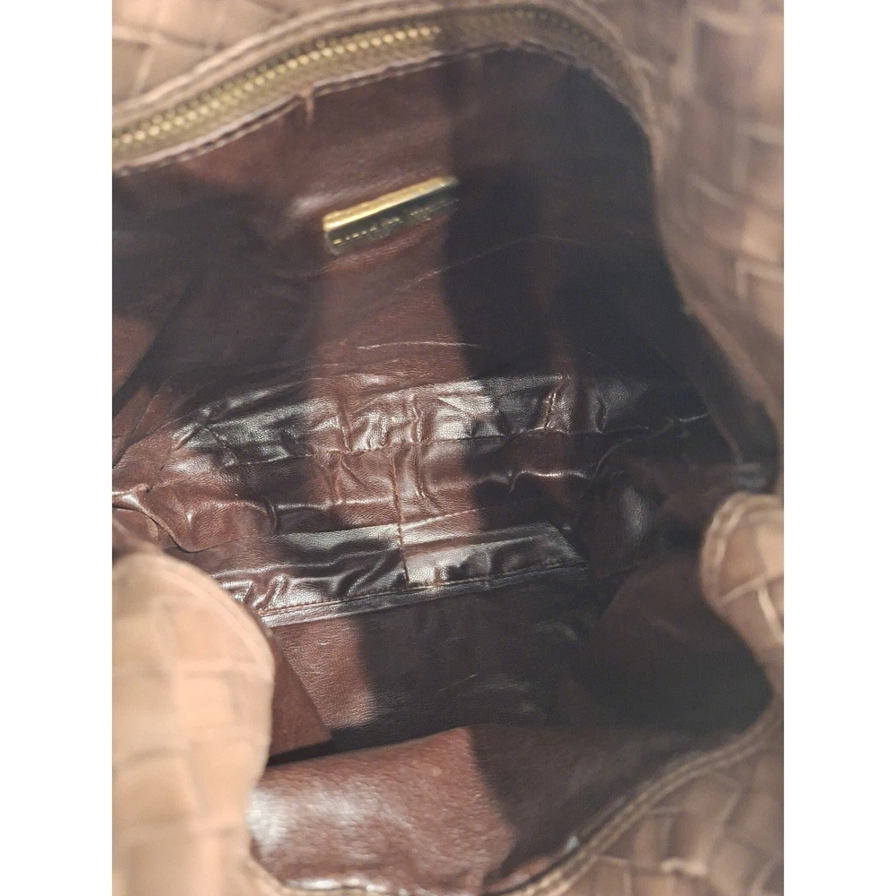 Vintage 00s Y2K Harold Powell Black Leather Patchwork Cowhide Tote Bag 14x10.5"