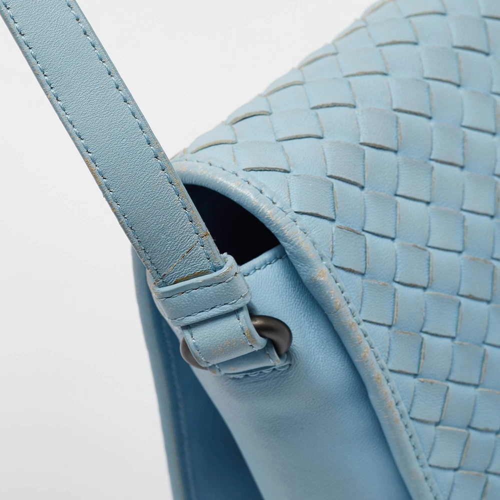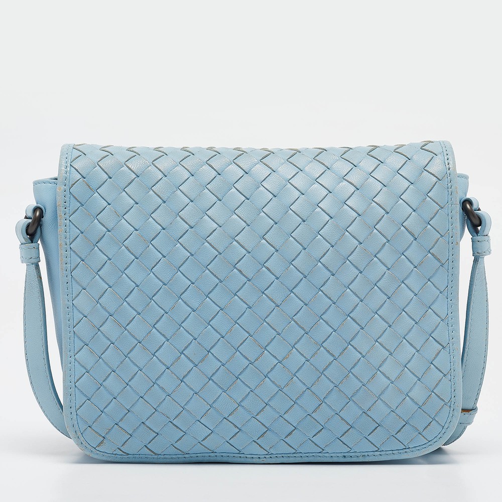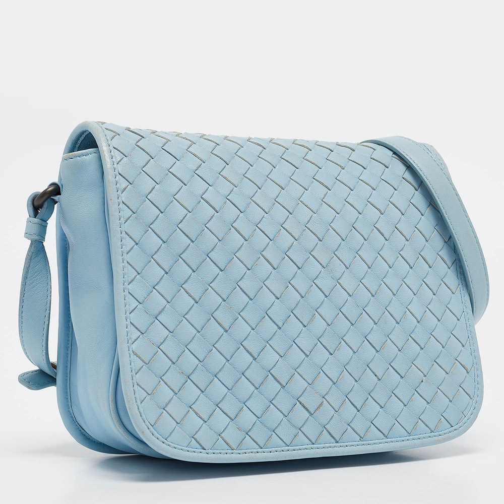 Swap that regular everyday tote with this charming crossbody bag from the house of Bottega Veneta. It features an exterior with the Intrecciato weave pattern on it. It comes fitted with an adjustable shoulder strap and a full flap style. The spacious interior with suede lining can hold all your daily essentials with great easeCertified by The Luxury Closet - This item has gone through a detailed authentication process overseen by our experts. We offer a lifetime guarantee of authenticity on all our items. Import duties, taxes and charges are not included in the item price. These charges are the buyers responsibility. Please check with your country’s customs office to determine what these additional cost will be prior to buying. Our eBay Store About Us Contact Us Add to Favorite Sellers Bottega Veneta Light Blue Intrecciato Leather Flap Crossbody Bag $426.8 Swap that regular everyday tote with this charming crossbody bag from the house of Bottega Veneta. It features an exterior with the Intrecciato weave pattern on it. It comes fitted with an adjustable shoulder strap and a full flap style. The spacious interior with suede lining can hold all your daily essentials with great ease Product Details Brand Color Blue Dimensions Height: 18 cm, Width: 6 cm, Length: 21 cm Material Leather Size Outsole Width Outsole Length Heel Height Includes The Luxury Closet Packaging Certified by The Luxury Closet This item has gone through a detailed authentication process overseen by our experts. We offer a lifetime guarantee of authenticity on all our items. How We Check The in-house team of experts at The Luxury Closet is highly trained to verify the authenticity and the condition of the luxury products. They ensure that only 100% authentic items are put on sale.The evaluation process is unique with its own mix of assessment criteria and differs according to the category. Each item is evaluated based on the following combination of hallmarks, hardware, stitching, symmetry, material, craftsmanship, stamping, codes, hologram stickers, and packaging. Our authenticators also check if the items have been modified or amended (e.g., aftermarket diamonds, replaced batteries, repaired bags, etc.) International Buyers Import duties, taxes and charges are not included in the item price. These charges are the buyers responsibility. Please check with your country’s customs office to determine what these additional cost will be prior to buying.
