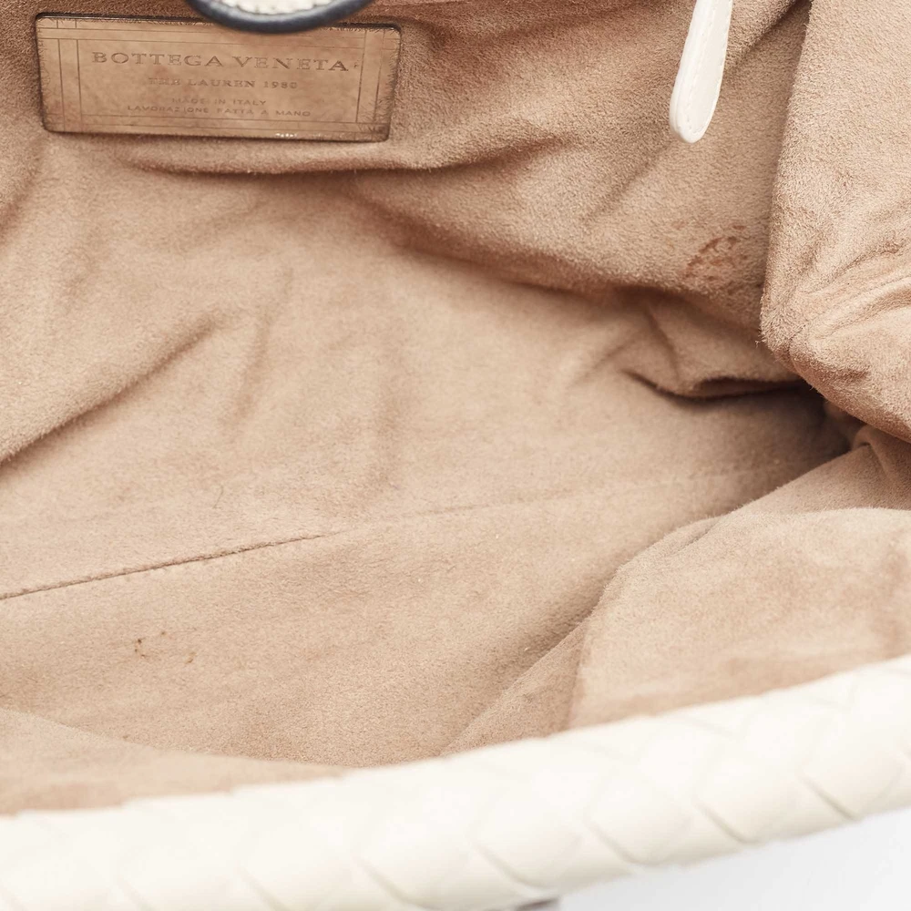 The Lauren 1980 clutch by Bottega Veneta was named after Lauren Hutton, who carried it in the movie American Gigolo. The soft, Intrecciato woven leather clutch was a big hit then, and its many versions are still selling hot today. This beauty in off white and black Intrecciato leather clutch has a frame top with a tab closure. The interior is lined with suede.Certified by The Luxury Closet - This item has gone through a detailed authentication process overseen by our experts. We offer a lifetime guarantee of authenticity on all our items. Import duties, taxes and charges are not included in the item price. These charges are the buyers responsibility. Please check with your country’s customs office to determine what these additional cost will be prior to buying. Our eBay Store About Us Contact Us Add to Favorite Sellers Bottega Veneta Off White/Black Intrecciato Leather Lauren 1980 Clutch $1587.3 The Lauren 1980 clutch by Bottega Veneta was named after Lauren Hutton, who carried it in the movie American Gigolo. The soft, Intrecciato woven leather clutch was a big hit then, and its many versions are still selling hot today. This beauty in off white and black Intrecciato leather clutch has a frame top with a tab closure. The interior is lined with suede. Product Details Brand Color White Dimensions Height: 18 cm, Width: 7 cm, Length: 25 cm Material Leather Size Outsole Width Outsole Length Heel Height Includes Original Dustbag, Pocket Mirror Certified by The Luxury Closet This item has gone through a detailed authentication process overseen by our experts. We offer a lifetime guarantee of authenticity on all our items. How We Check The in-house team of experts at The Luxury Closet is highly trained to verify the authenticity and the condition of the luxury products. They ensure that only 100% authentic items are put on sale.The evaluation process is unique with its own mix of assessment criteria and differs according to the category. Each item is evaluated based on the following combination of hallmarks, hardware, stitching, symmetry, material, craftsmanship, stamping, codes, hologram stickers, and packaging. Our authenticators also check if the items have been modified or amended (e.g., aftermarket diamonds, replaced batteries, repaired bags, etc.) International Buyers Import duties, taxes and charges are not included in the item price. These charges are the buyers responsibility. Please check with your country’s customs office to determine what these additional cost will be prior to buying.