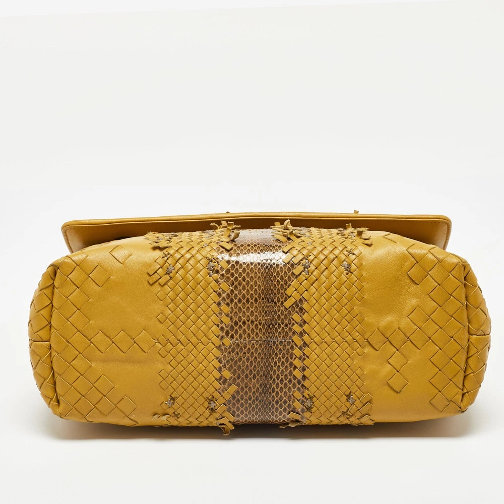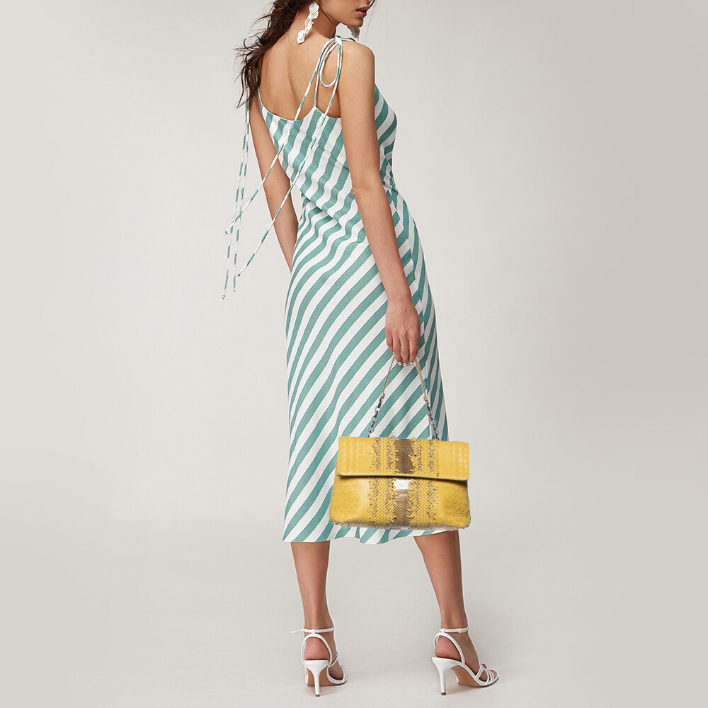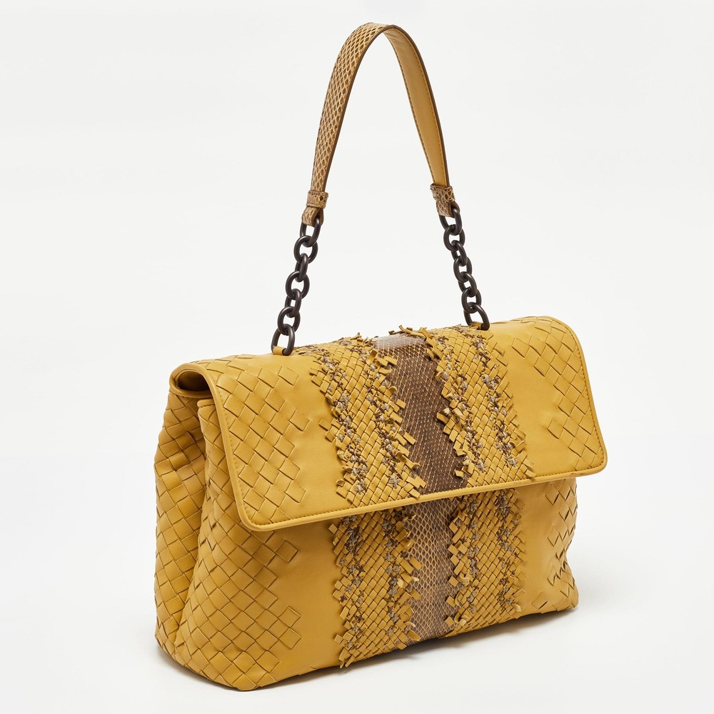 Designer bags are ideal companions for ample occasions Here we have a fashion meets functionality piece crafted with precision. It has been equipped with a well sized interior that can easily fit your essentials.Certified by The Luxury Closet - This item has gone through a detailed authentication process overseen by our experts. We offer a lifetime guarantee of authenticity on all our items. Import duties, taxes and charges are not included in the item price. These charges are the buyers responsibility. Please check with your country’s customs office to determine what these additional cost will be prior to buying. Our eBay Store About Us Contact Us Add to Favorite Sellers Bottega Veneta Yellow/Brown Intrecciato Leather and Watersnake Olimpia Shoulder Bag $713.9 Designer bags are ideal companions for ample occasions Here we have a fashion meets functionality piece crafted with precision. It has been equipped with a well sized interior that can easily fit your essentials. Product Details Brand Color Yellow Dimensions Height: 20 cm, Width: 11 cm, Length: 28 cm Material Leather Size Outsole Width Outsole Length Heel Height Includes Original Dustbag, Original Box, Info Booklet, Mirror Certified by The Luxury Closet This item has gone through a detailed authentication process overseen by our experts. We offer a lifetime guarantee of authenticity on all our items. How We Check The in-house team of experts at The Luxury Closet is highly trained to verify the authenticity and the condition of the luxury products. They ensure that only 100% authentic items are put on sale.The evaluation process is unique with its own mix of assessment criteria and differs according to the category. Each item is evaluated based on the following combination of hallmarks, hardware, stitching, symmetry, material, craftsmanship, stamping, codes, hologram stickers, and packaging. Our authenticators also check if the items have been modified or amended (e.g., aftermarket diamonds, replaced batteries, repaired bags, etc.) International Buyers Import duties, taxes and charges are not included in the item price. These charges are the buyers responsibility. Please check with your country’s customs office to determine what these additional cost will be prior to buying.