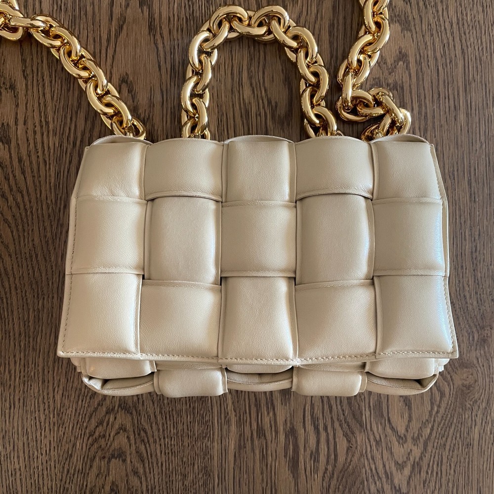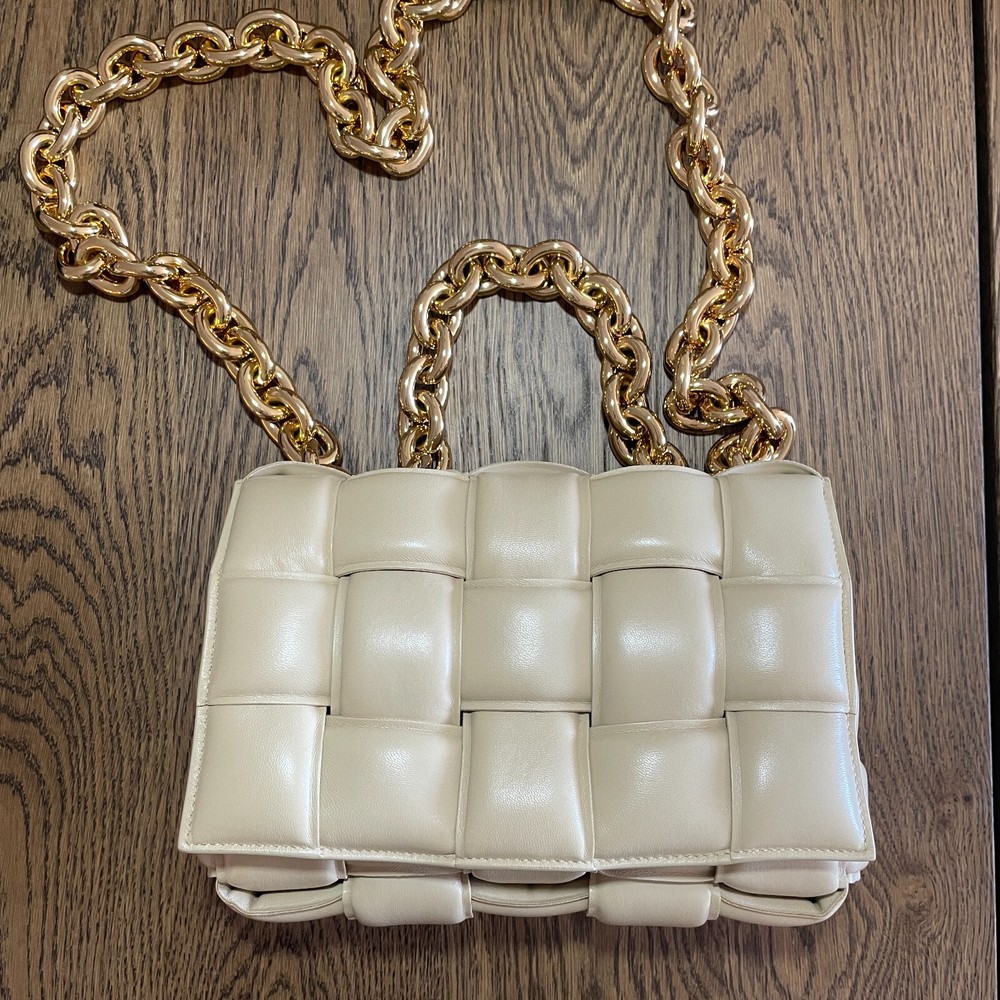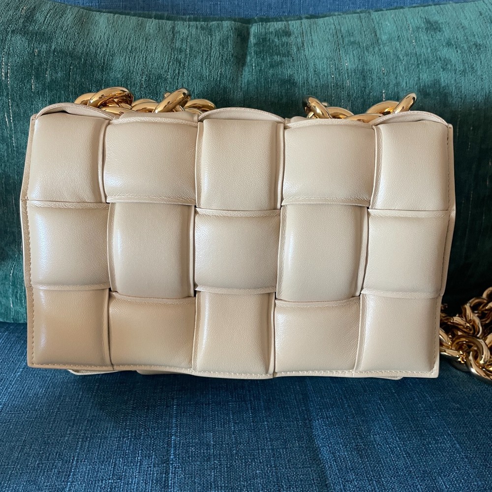 Absolutely new! Never been worn! Free authentic from EBAy! Free delivery! Original price $5500+tax! Beautiful color - porridge Lavish padding brings eye-catching dimension to the brand's iconic intrecciato weave on this boxy bag crafted in Italy from supple nappa leather. A chunky chain handle adds an edgy flourish to the pristine look. Magnetic flap closure Chain handle Interior zip pocket Leather Made in Italy