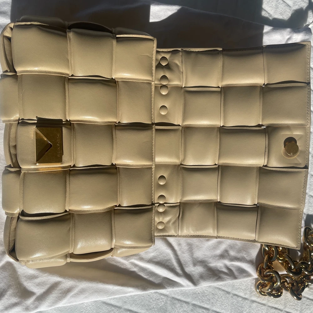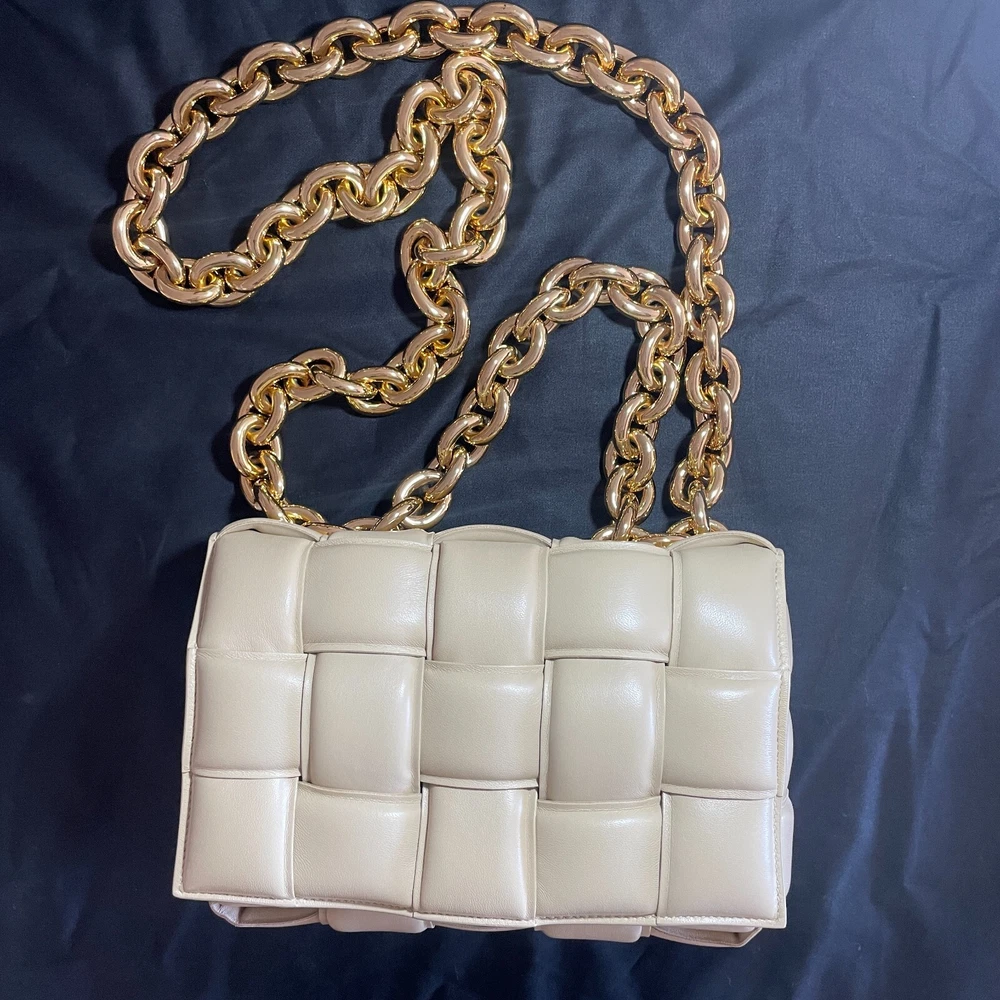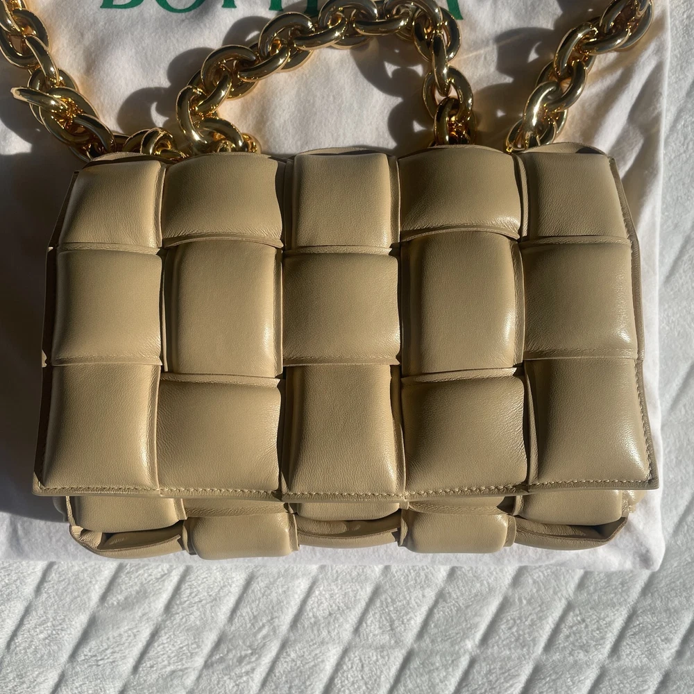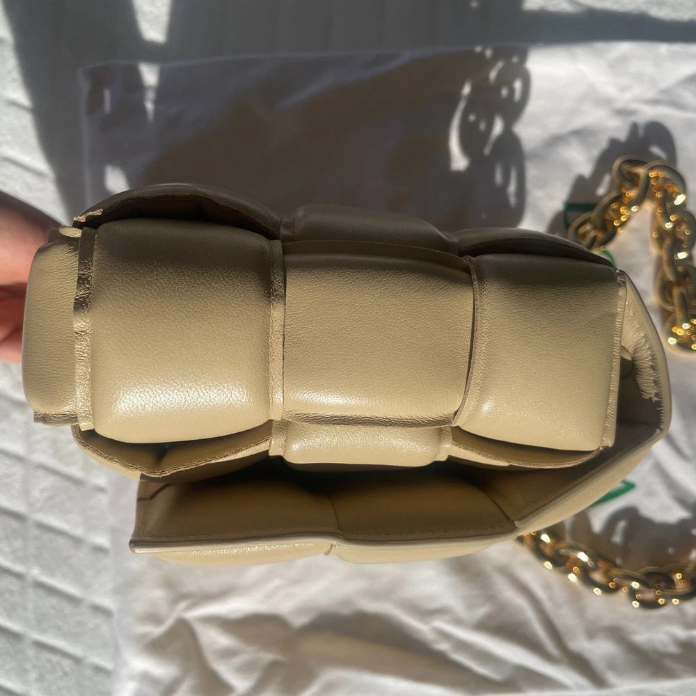 Absolutely new! Never been worn! Free authentic from EBAy! Free delivery! Original price $5500+tax! Beautiful color - porridge Lavish padding brings eye-catching dimension to the brand's iconic intrecciato weave on this boxy bag crafted in Italy from supple nappa leather. A chunky chain handle adds an edgy flourish to the pristine look. Magnetic flap closure Chain handle Interior zip pocket Leather Made in Italy