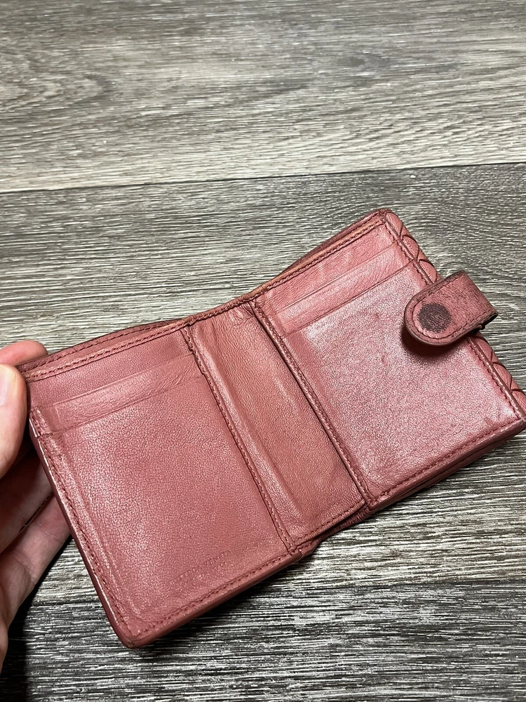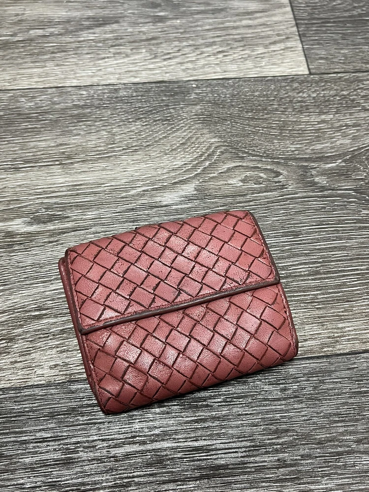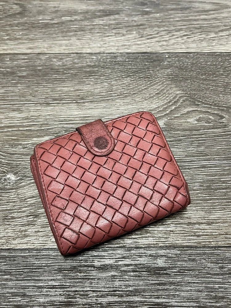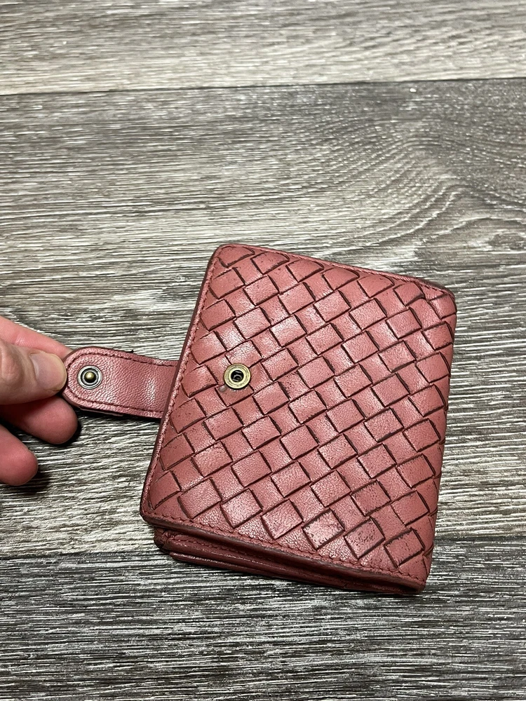 Country/Region of Manufacture: Italy Brand: Bottega Veneta Department: Unisex Features: Credit Card, Folding Personalize: No Theme: Money, Woven, Luxury Item Width: 4.75 In Style: Compact Material: Leather Color: Pink Handmade: No Pattern: Solid Fabric Type: Leather Accents: Woven Item Length: 4.75 In Vintage: Yes Size: One Size Type: Wallet Character: Intrecciato