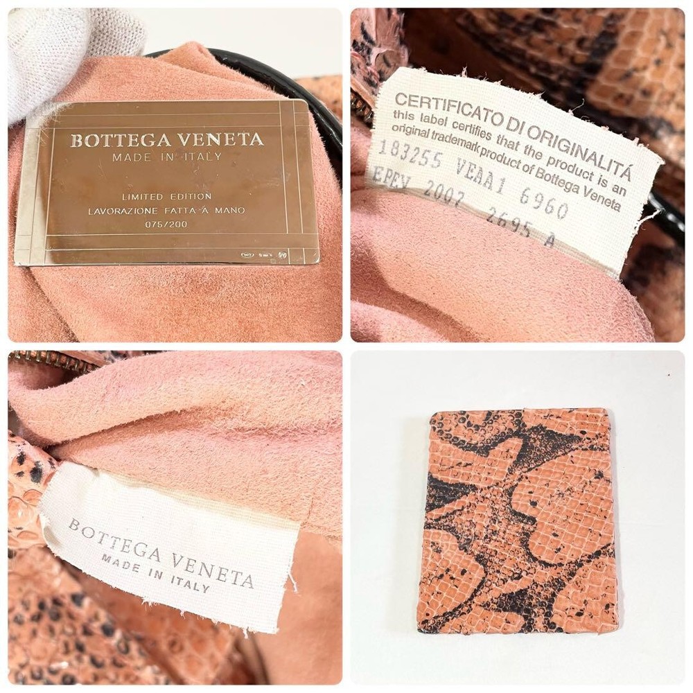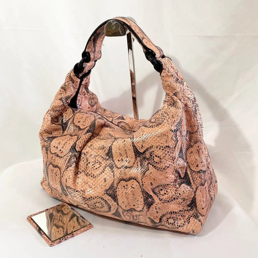 Bottega Veneta Handbag Hobo Python Snake Print With Mirror Used Excellent+ Japan Description - Brand: Bottega Veneta - Item: Hobo Handbag (Python Pattern) with Mirror - Color: Pink Beige - Material: Leather - Size: - Height: 28 cm (11 inches) - Width: 42 cm (16.5 inches) - Depth: 15 cm (5.9 inches) - Condition: - Exterior: Slight signs of use, minor scuffing. - Interior: Excellent, no visible damage. - Corners: Minor wear. - Hardware: Excellent, minimal signs of use. - Accessories: Includes mirror All of Items Will be Shipped From Japan. Please check with the image. About the condition Damages such as stains, scuffs, and scratches are listed only if they are noticeable. Please understand that this is a used item, so there may be some inconspicuous scuffs or signs of use even if they are not listed. Please note that there may be unnoticeable scuffs and scratches on the item even if they are not listed. Please check the images for details of the condition. Note: This is a used item. We have tried to describe the condition of the item with detailed pictures and text as much as possible, but please understand that there may be some things that we have overlooked because it is a used item. Please note that measurements are taken by our company, so please understand that there may be some errors. If there is no special description about the accessories, only this item will be included. Colors may look different from the actual item depending on your monitor and shooting environment. Payment Please pay within 7 days of first purchase. ebay payments We can not separate invoice. Please understand. Shipping&Handling ■Speedy Shipping Shipped by DHL, FedEx, or Japan Post with tracking number. *If your location is designated as remote, additional shipping charges may apply. (Some areas such as Australia, Canada, Chile, and remote areas of the U.S.) I will pack it carefully. ■Economy Shipping (Japan Post) Economy Airmail 15-40 days without tracking Additional shipping fees may apply for countries/areas where delivery by Japan Post is not available. Handling Time Please check the categories of Shipping and payments. International Buyers - Please Note: Import duties, taxes, and charges are not included in the item price or shipping cost. These charges are the buyer's responsibility. Please check with your country's customs office to determine what these additional costs will be prior to bidding or buying. If you have any questions about products, shipping, etc., please do not hesitate to contact us by message. Thank you for your understanding.