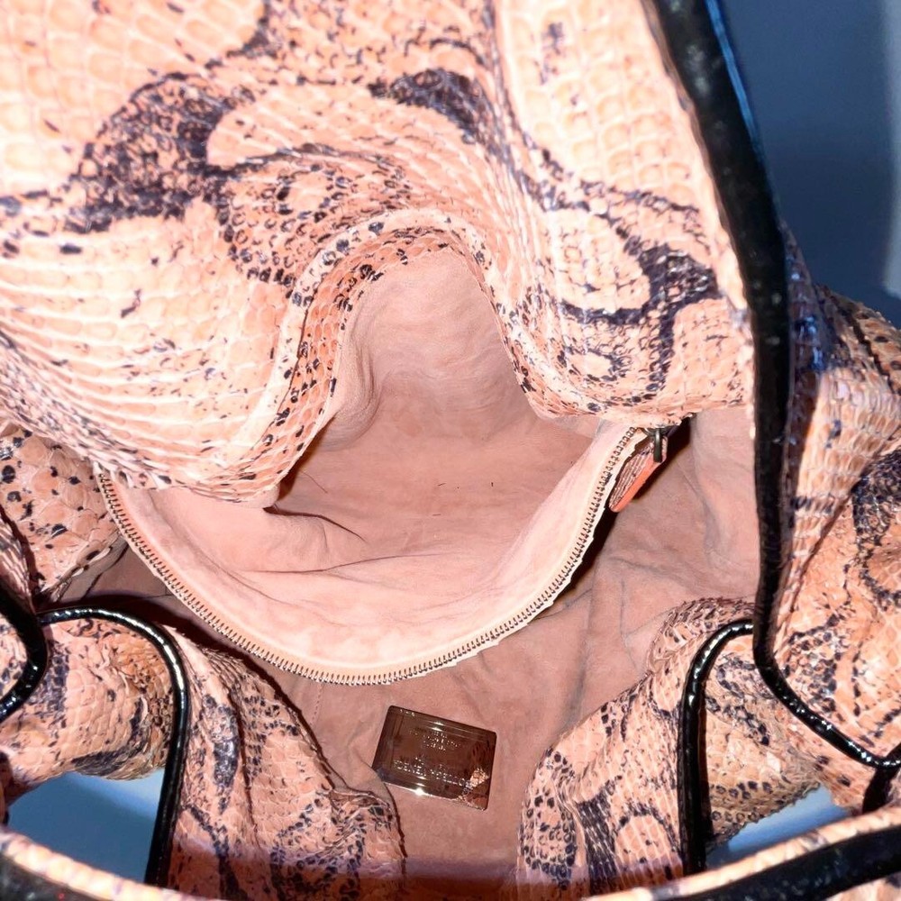 This Bottega Veneta hobo bag is absolutely stunning! The python snake print gives it a luxurious edge, and the pink-beige color is so versatile. The leather feels high-quality, and despite minor scuffs, it’s in fantastic condition. Love that it comes with a mirror—perfect for on-the-go touch-ups. The size is spacious but not bulky, making it ideal for daily use. A must-have for anyone who loves designer pieces with a unique flair!