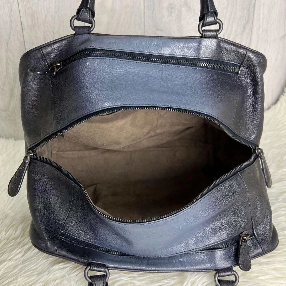 This rare Bottega Veneta Mini Boston Bag is absolutely stunning! The gradient leather has such a luxe feel, and the iconic intrecciato handle adds instant sophistication. Perfect size for essentials—fits a wallet, phone, and more. The navy shade is versatile and timeless. A true statement piece!
